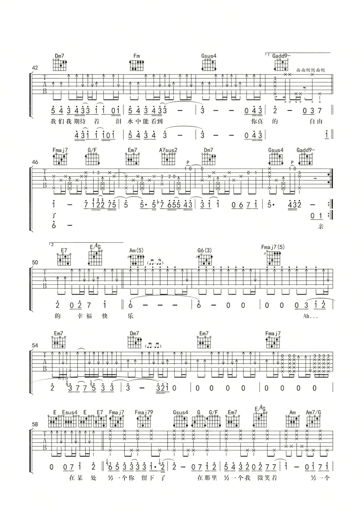 吉他弹唱C调来源:彼岸--杨鑫1964 浏览2018-03-19 13:34发布图谱共4页