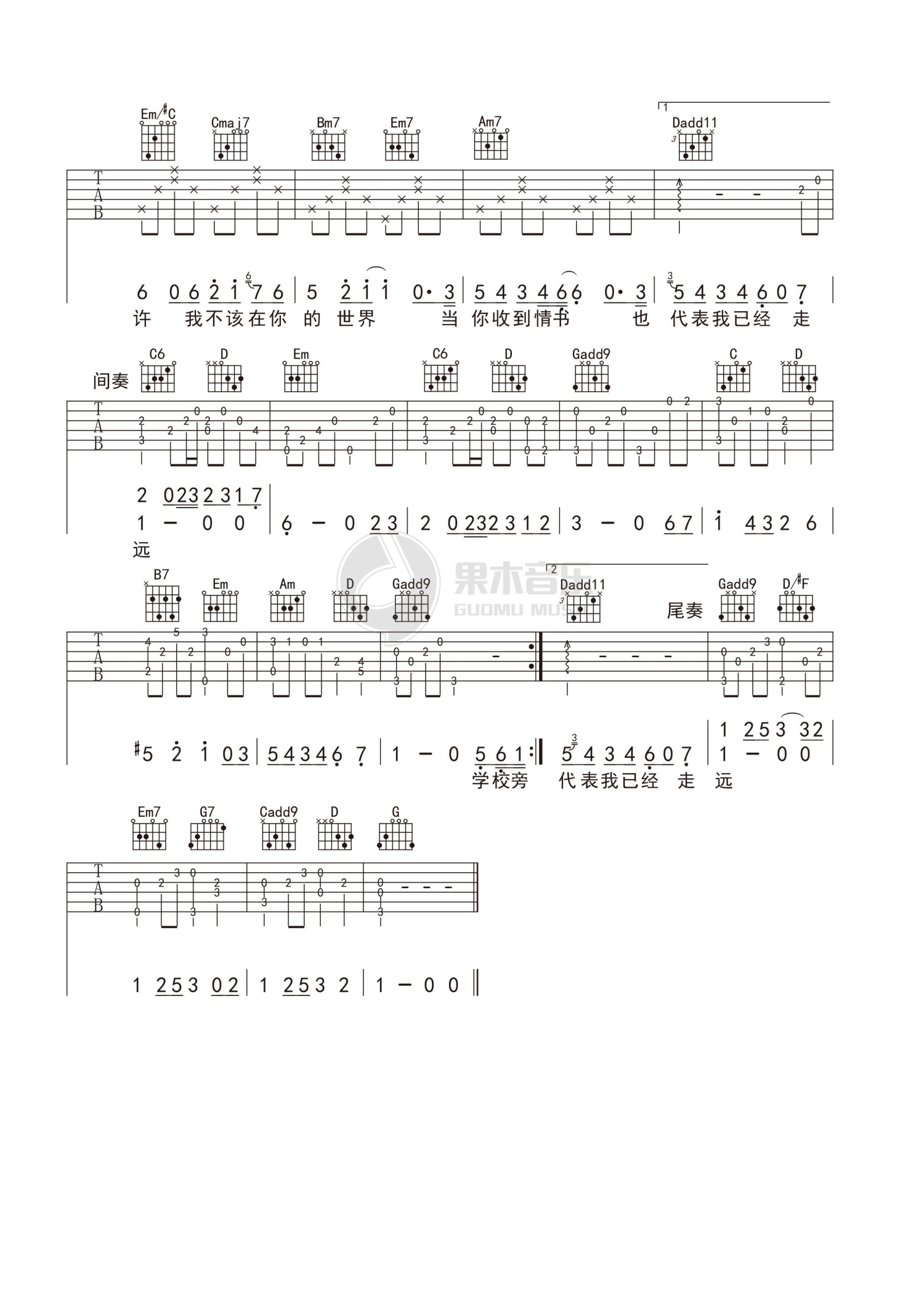当前位置:琴谱网>吉他弹唱>等你下课