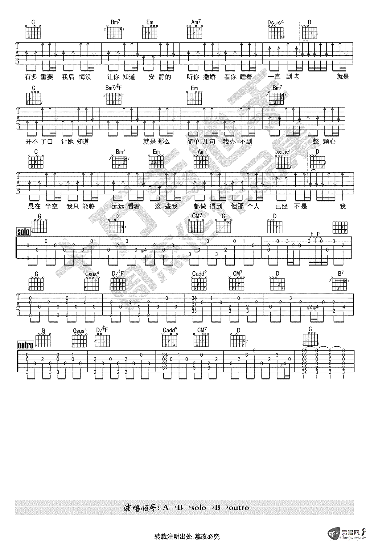 当前位置:琴谱网>吉他弹唱>开不了口
