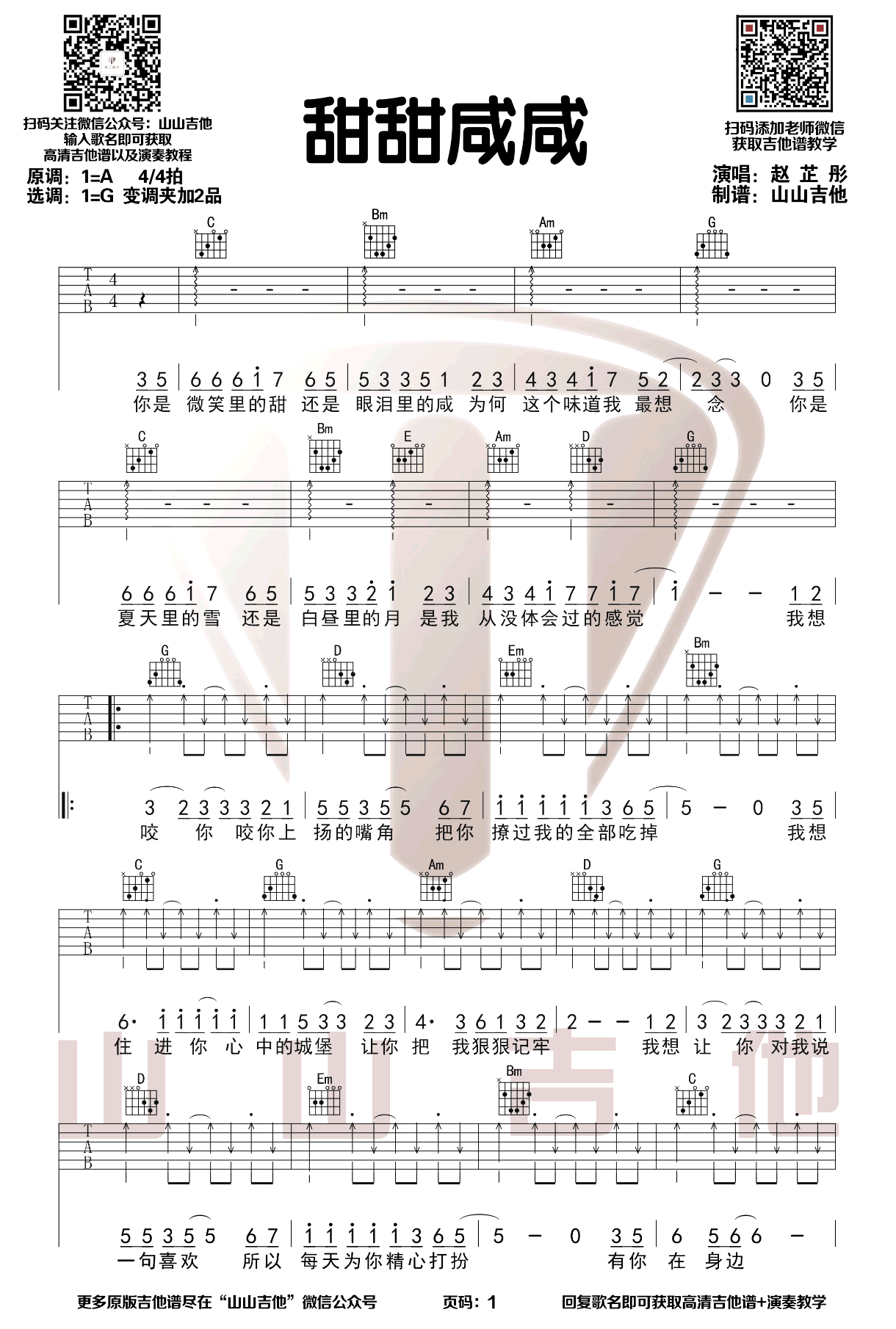 甜甜咸咸吉他谱 - 赵芷彤 - G调吉他弹唱谱 - 原版