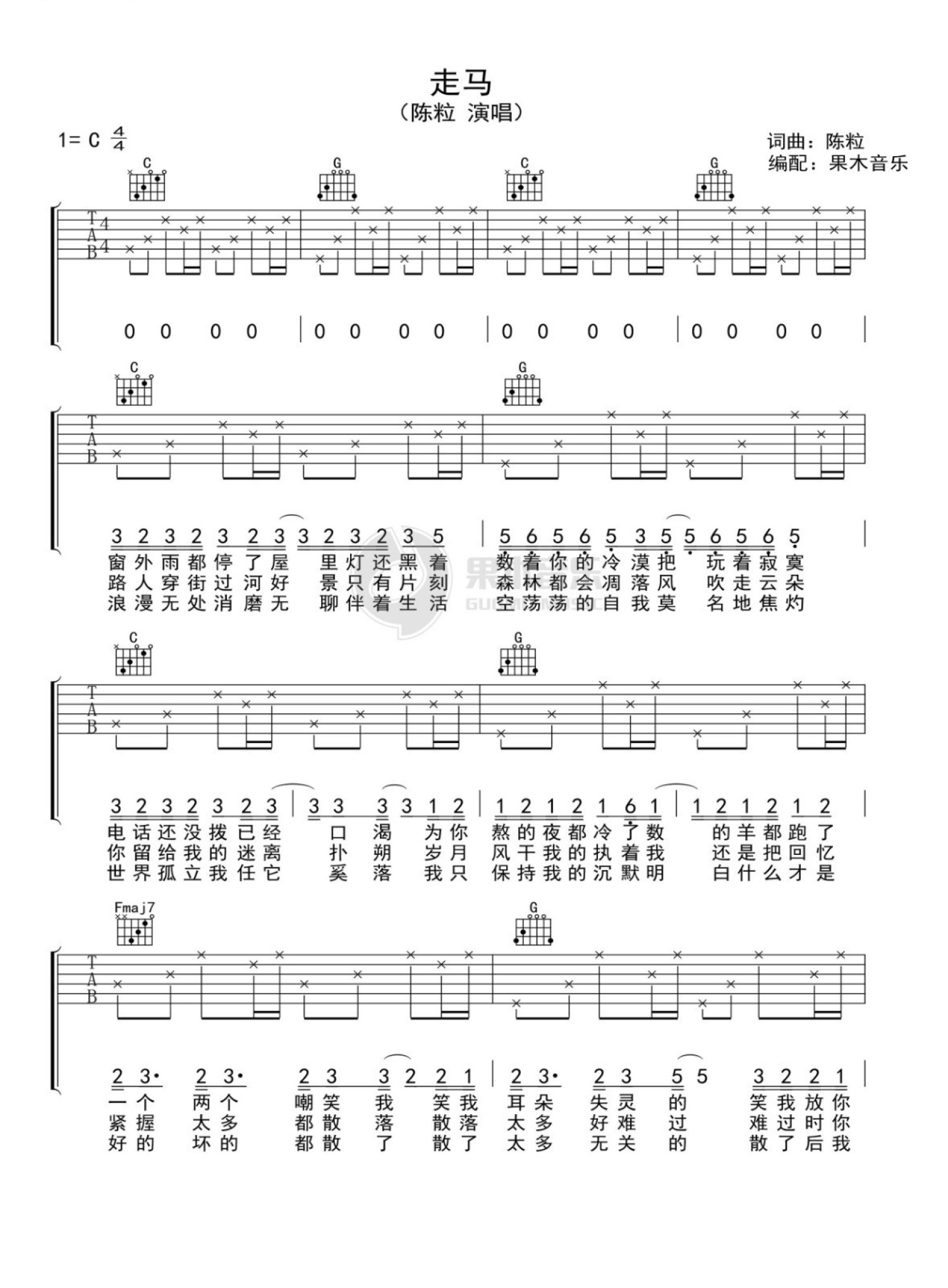 走马吉他谱 - 陈粒 - C调吉他弹唱谱