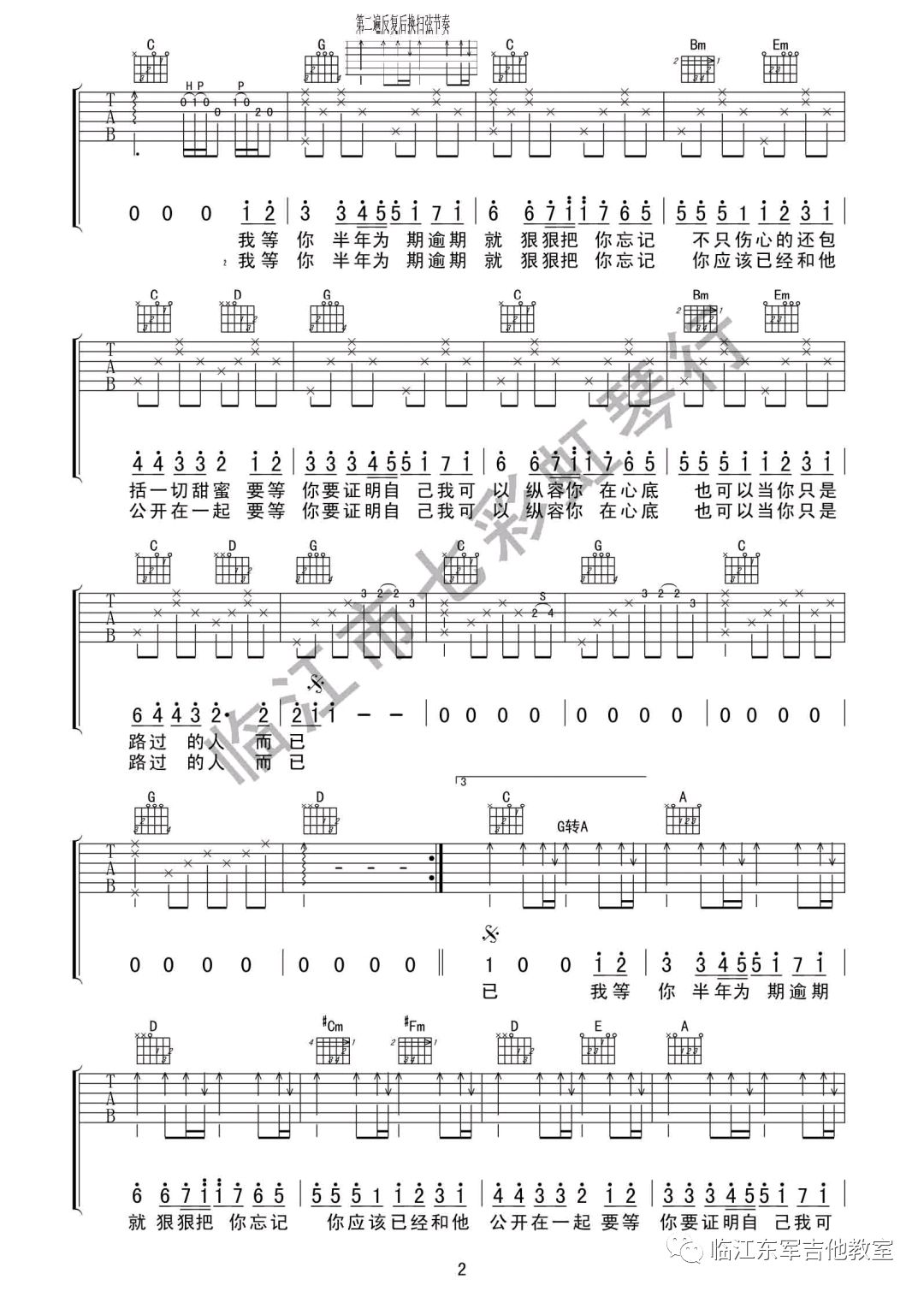 我等你吉他谱 - 光良/刘若英 - G调吉他弹唱谱