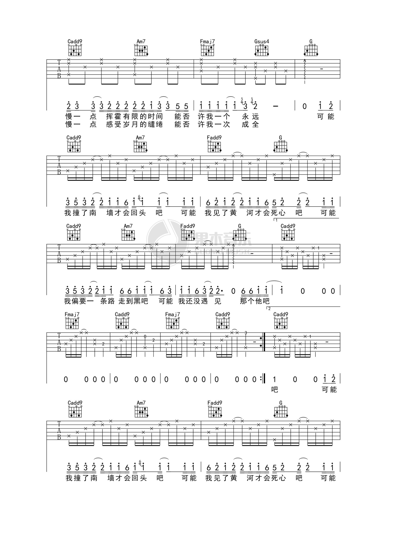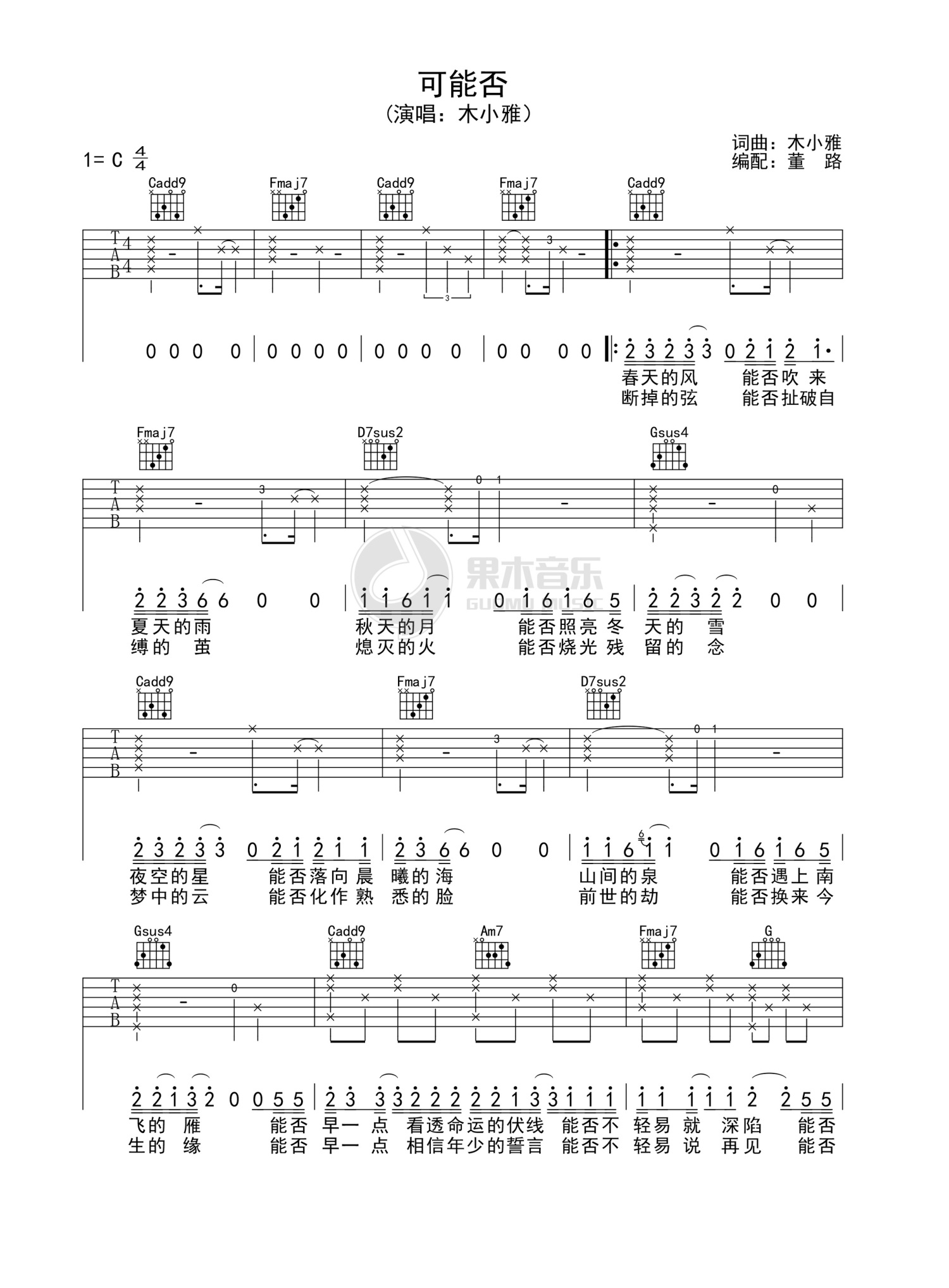 曲谱介绍: 木小雅《可能否》吉他谱_C调吉他弹唱谱