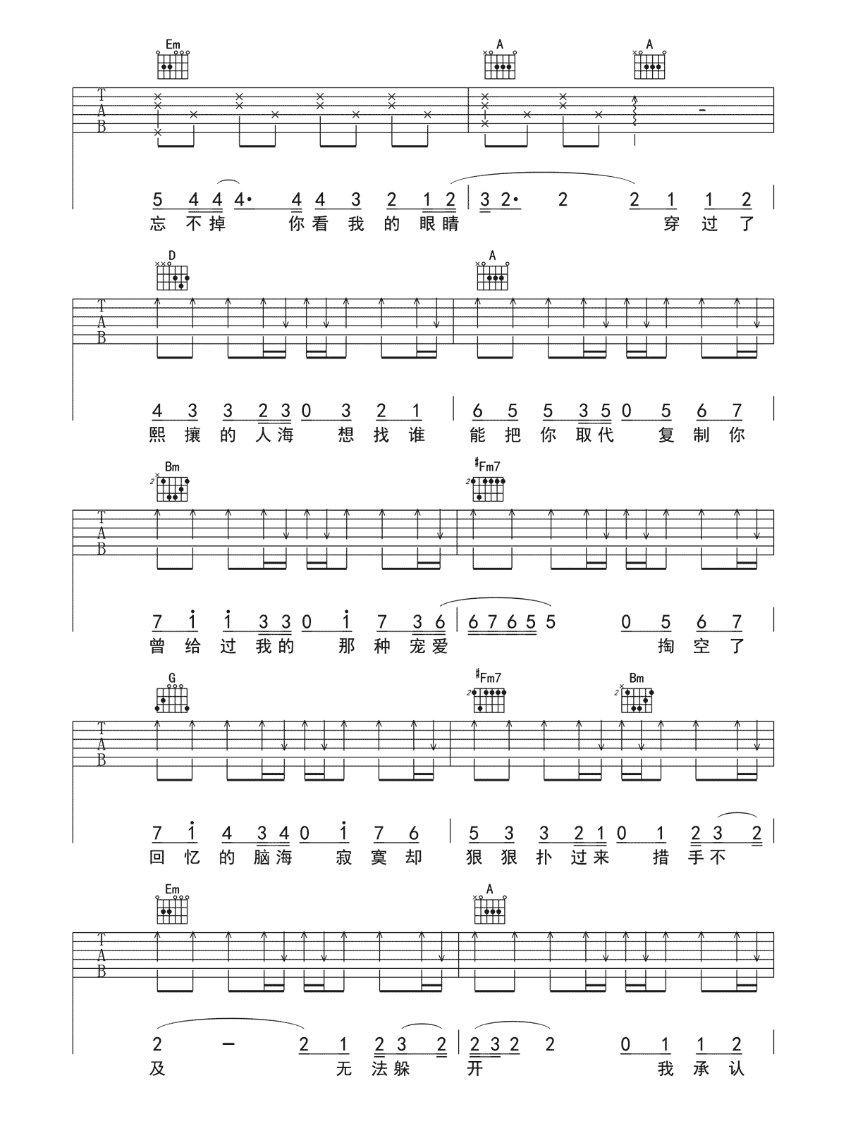 当前位置:琴谱网>吉他弹唱>不在