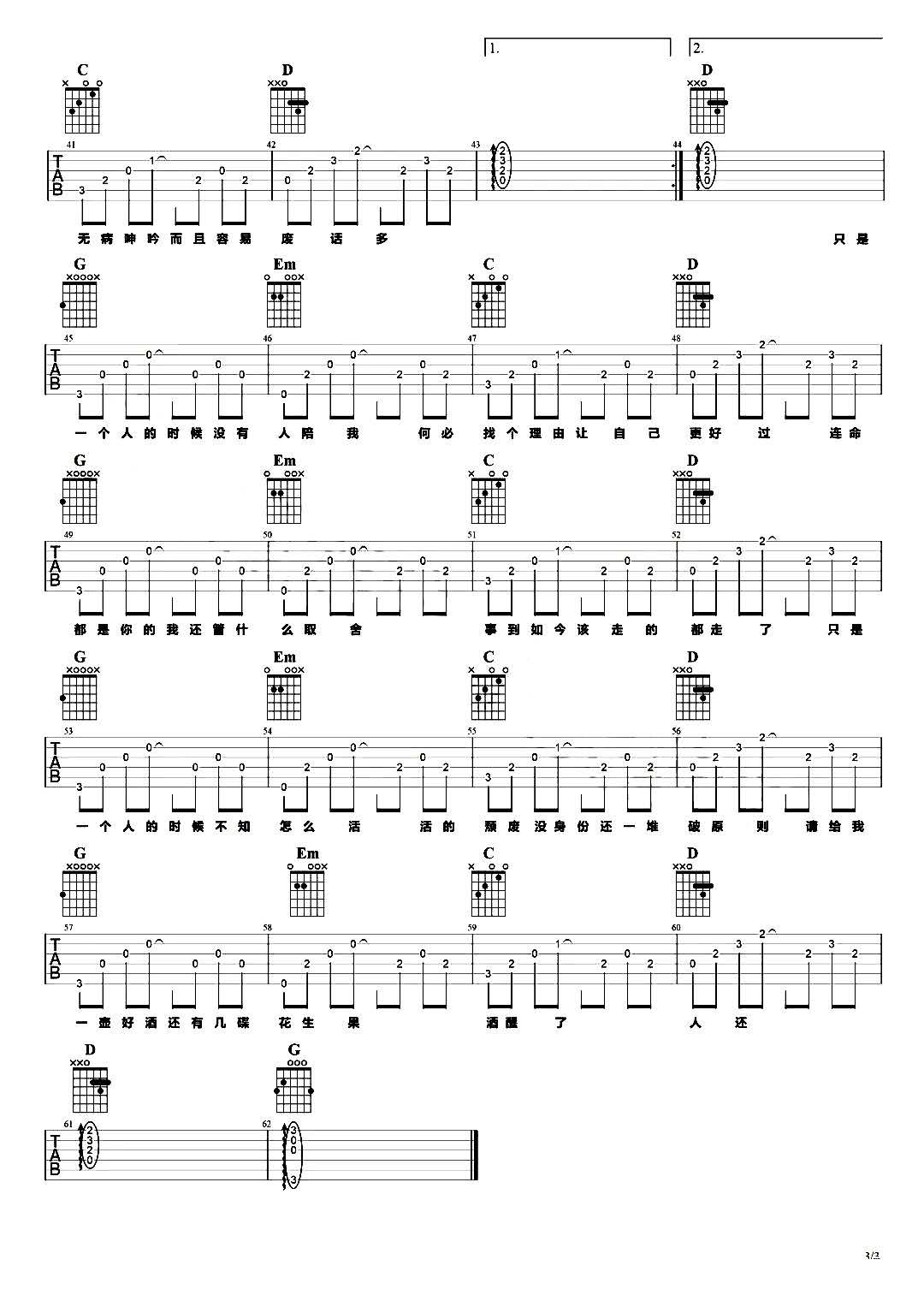 曲谱介绍: 孤记吉他谱_厘小白_《孤记》G调原版弹唱六线谱_高清图片谱分享,《孤记》是由厘小白演唱的一首民谣歌曲,这是一首悲伤得近乎抑郁的歌,用简单的吉他手鼓,和通俗易懂的话,寥寥几句便戳中最不堪一击的内心。歌者慢悠悠地唱着某个时刻,听的人却在心里走马观花般过完了一段年月。歌里有无奈,有心酸,有成全,还有苦涩的相信和坚持。