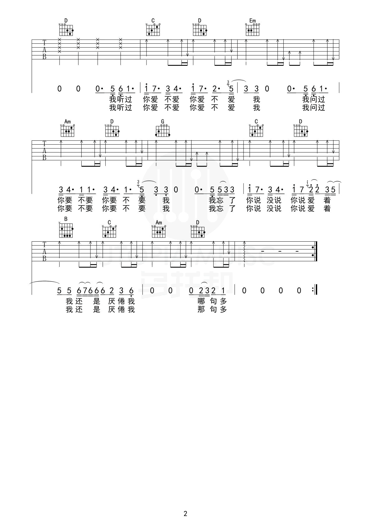 当前位置:琴谱网>吉他弹唱>不爱我