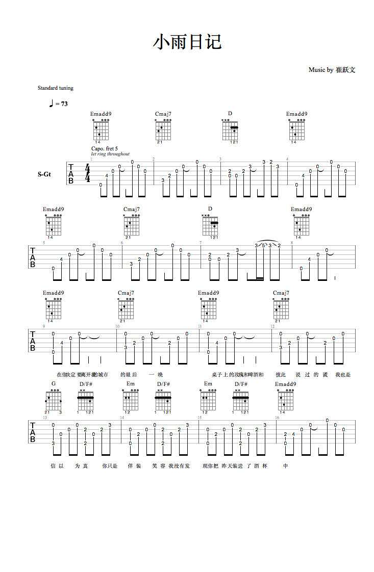 小雨日记吉他谱 - 崔跃文 - G调吉他弹唱谱 - 原版