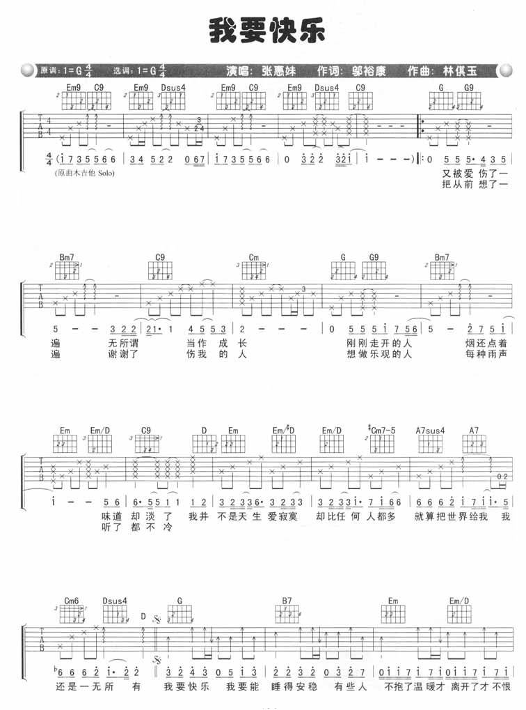 我要快乐吉他谱 - 张惠妹 - G调吉他弹唱谱