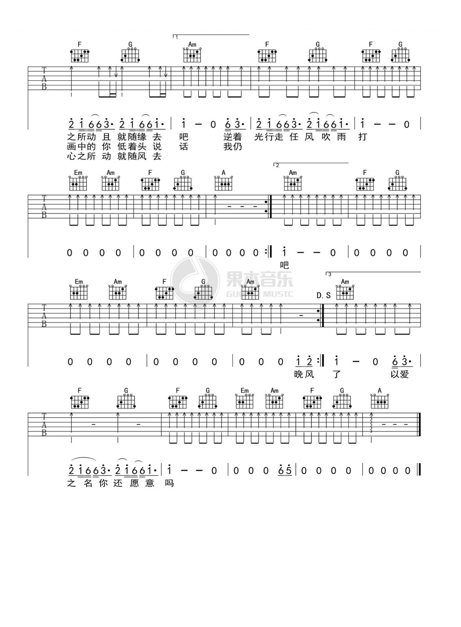 吉他弹唱C调来源:果木音乐718 浏览2019-12-11 16:13发布图谱共3页