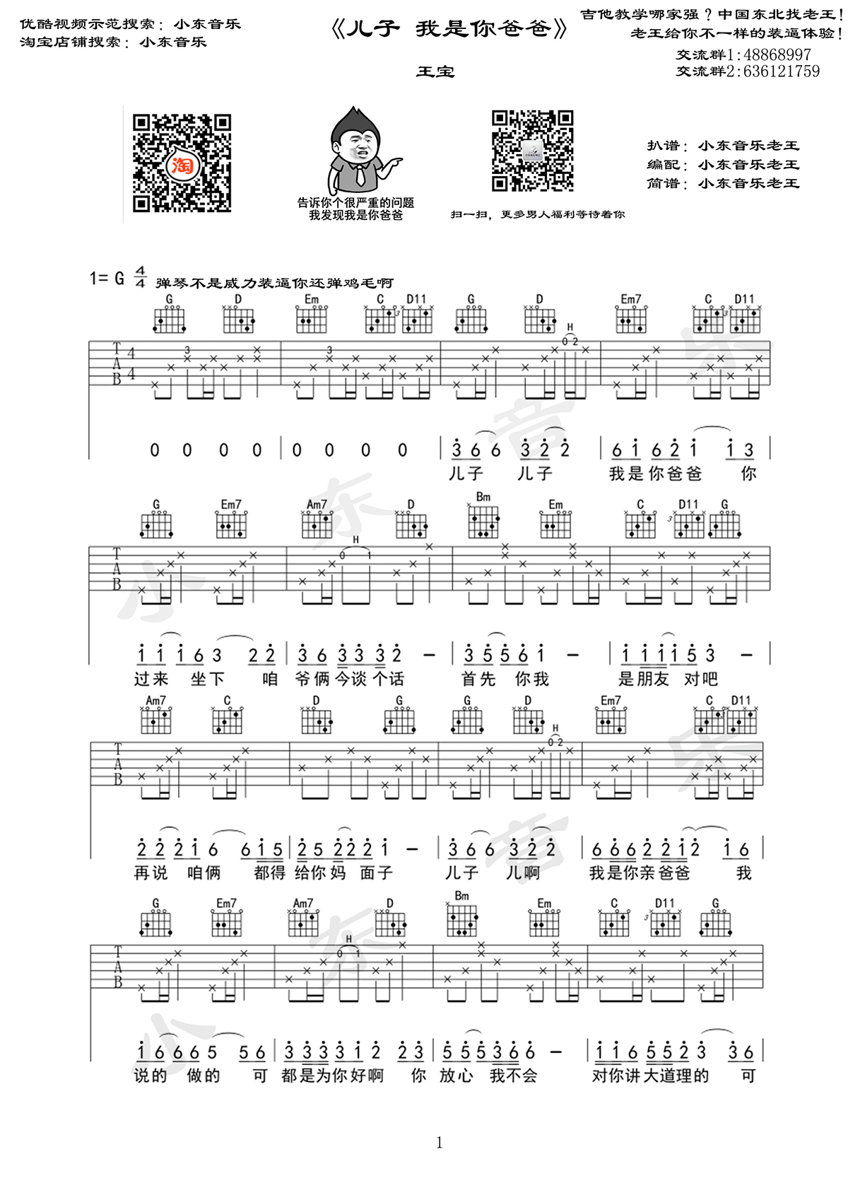 儿子我是你爸爸吉他谱 - 王宝 - G调吉他弹唱谱