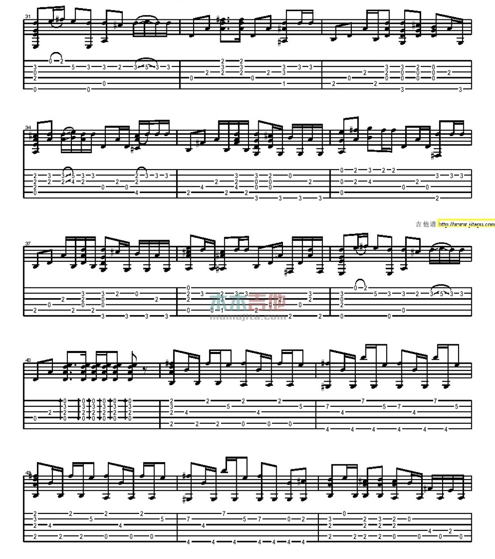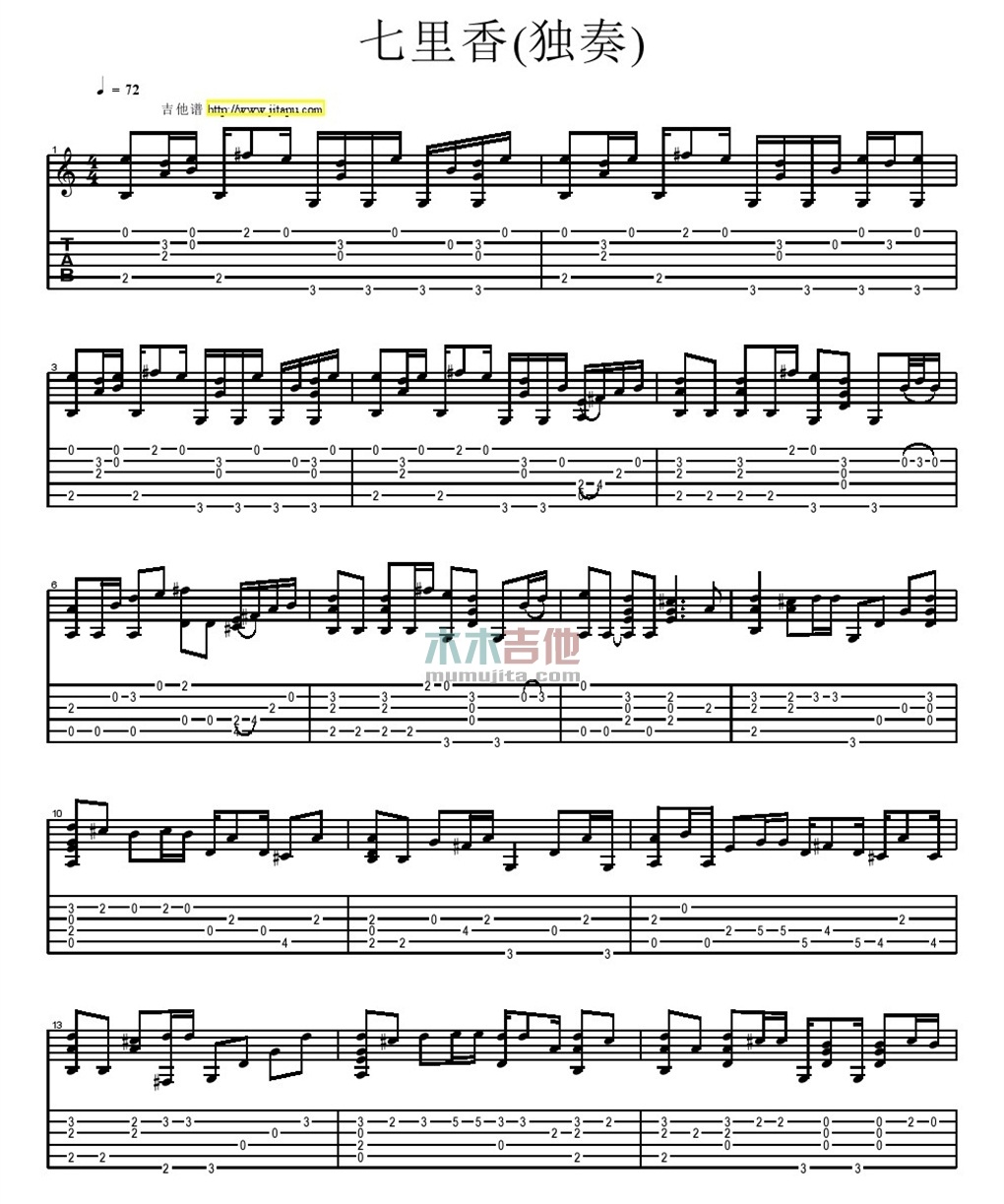 曲谱介绍: 周杰伦《七里香》吉他独奏谱,共有5张高清图谱。