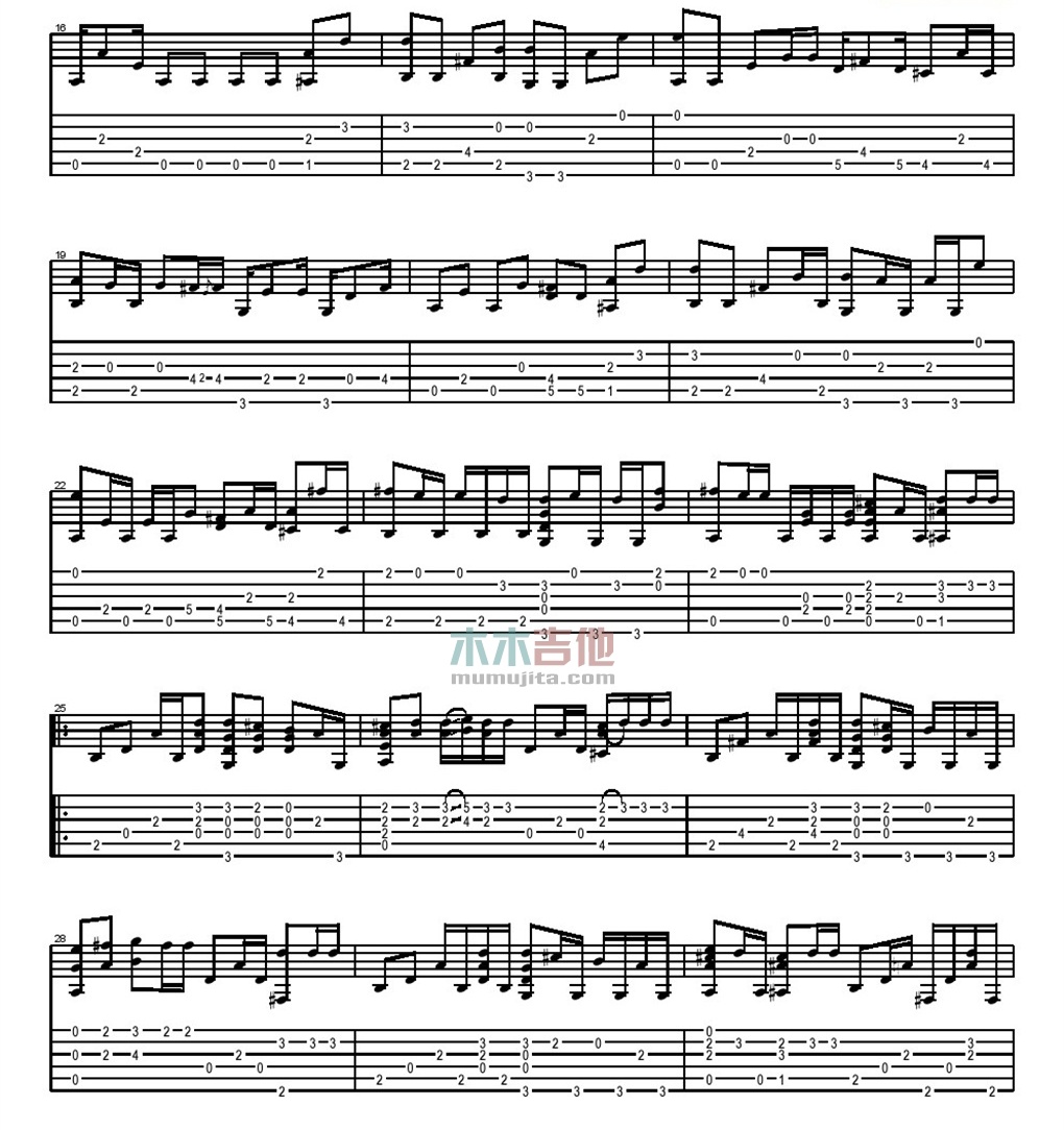 七里香吉他谱 - 周杰伦 - 吉他独奏谱