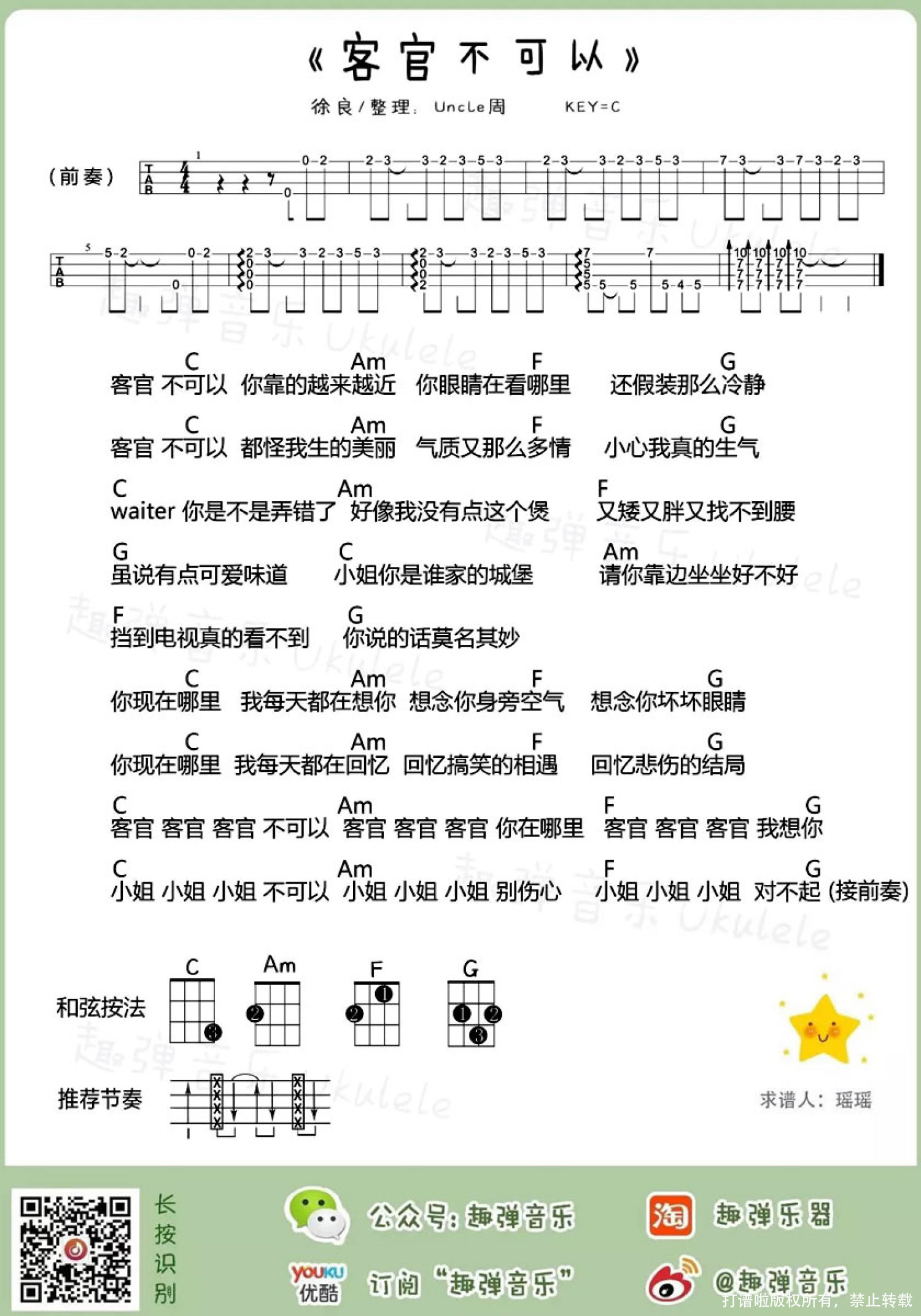 客官不可以尤克里里谱 - 徐良/小凌
