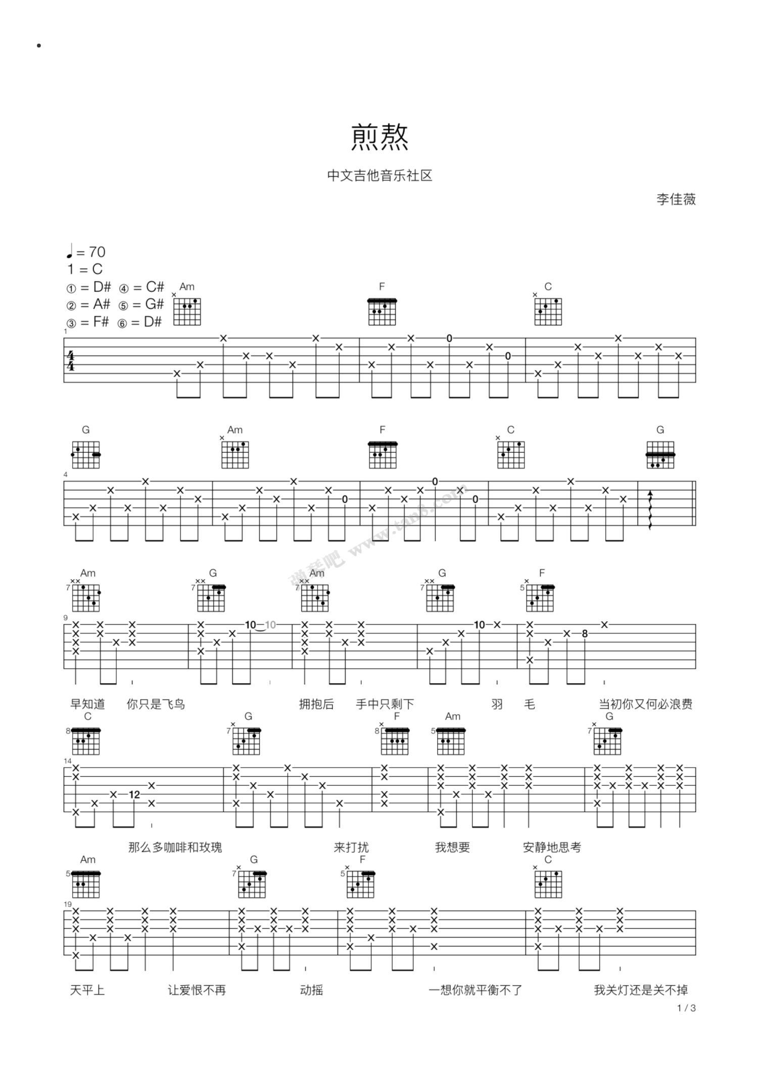 煎熬吉他谱 - 李佳薇 - 吉他弹唱谱