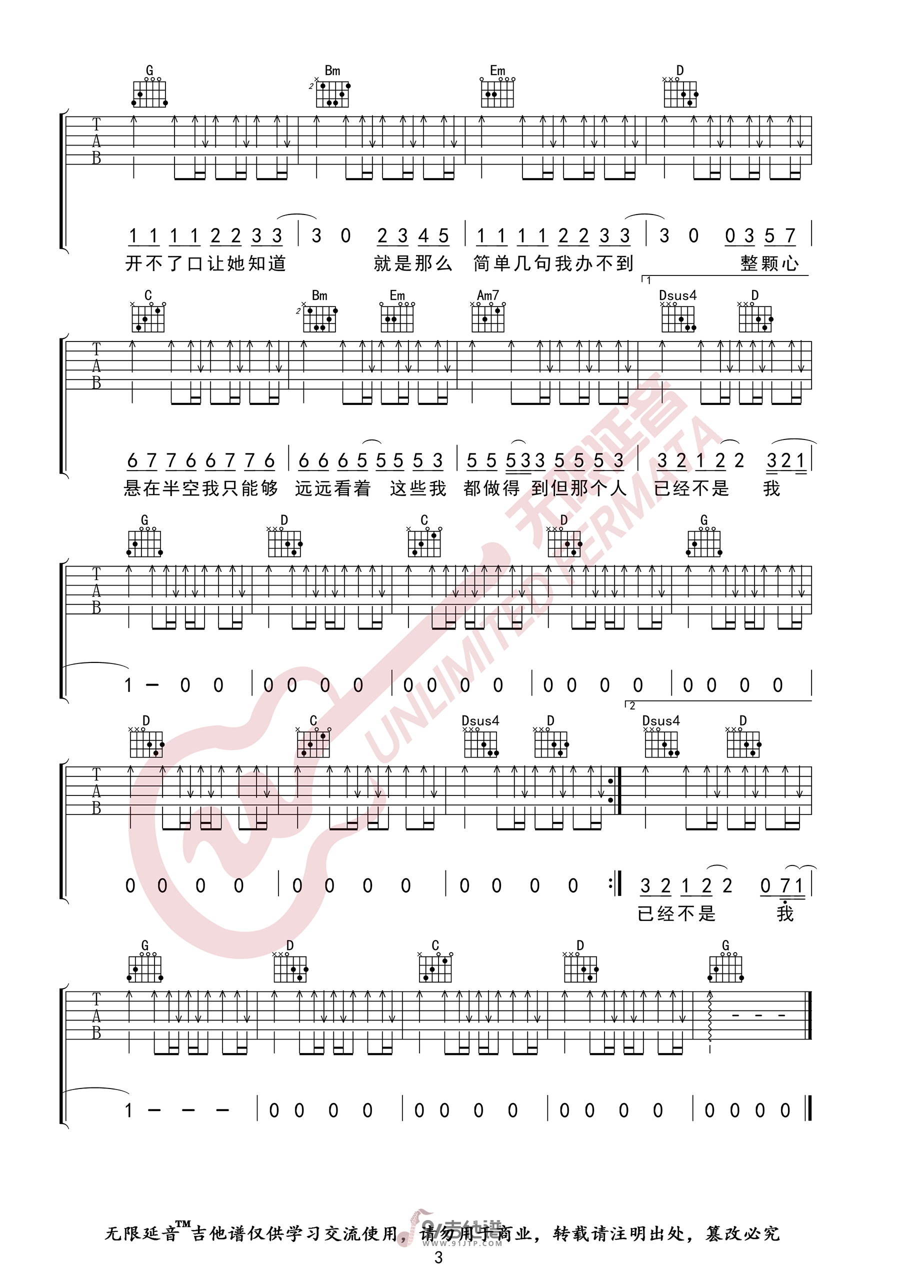 当前位置:琴谱网>吉他弹唱>开不了口