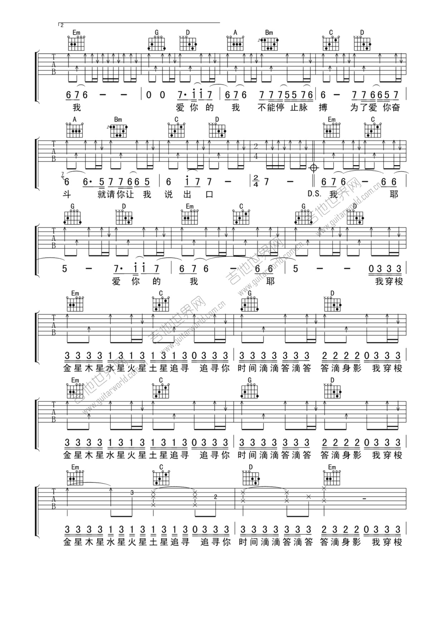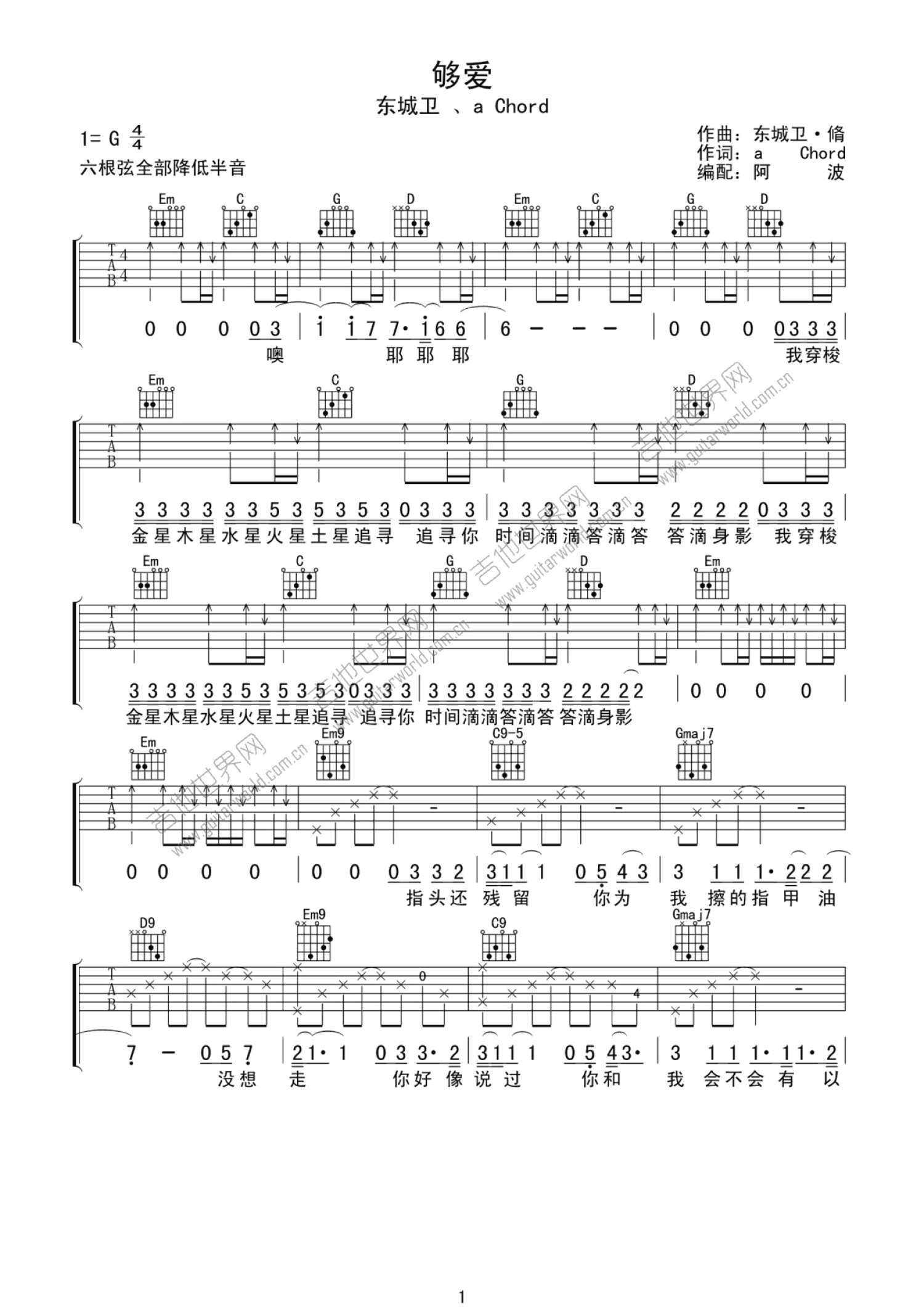 曲谱介绍: 东城卫 够爱吉他谱 G调高清版_图片谱
