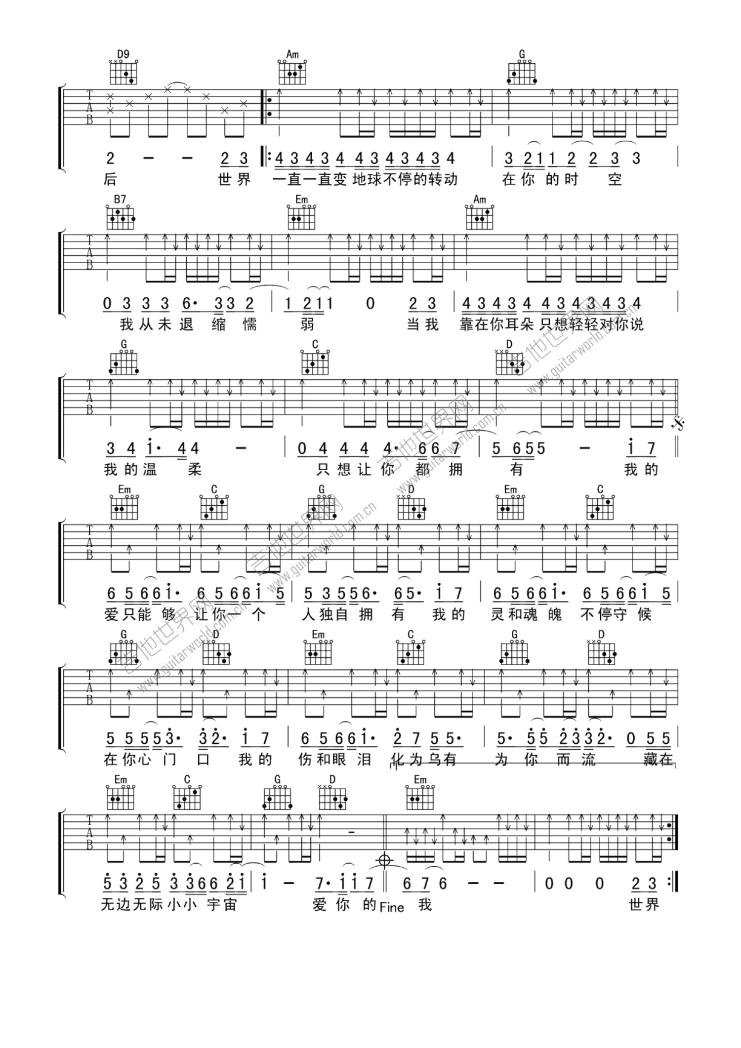 当前位置:琴谱网>吉他弹唱>够爱