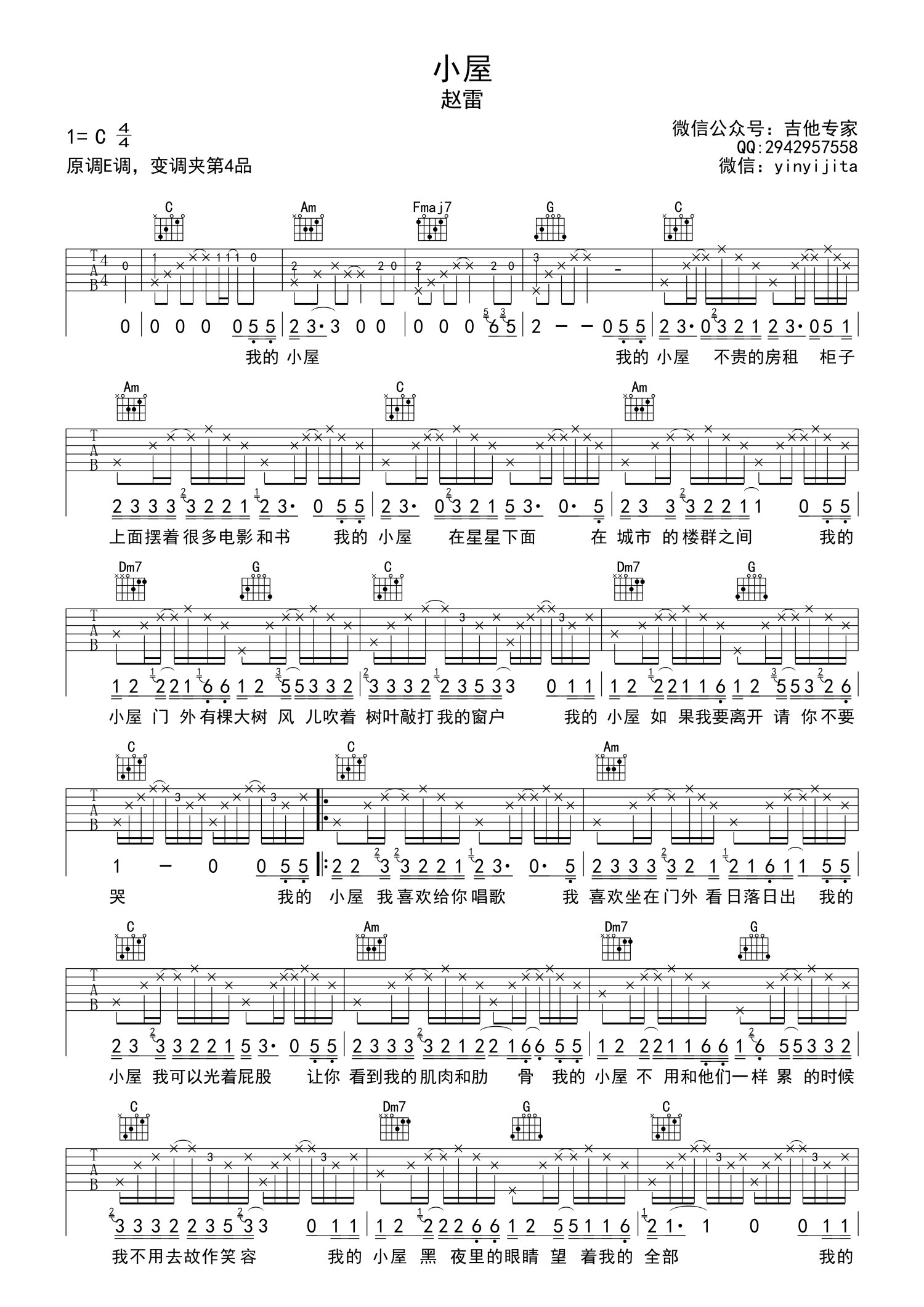 • 小屋吉他谱 - 赵雷 - C调吉他弹唱谱第1张