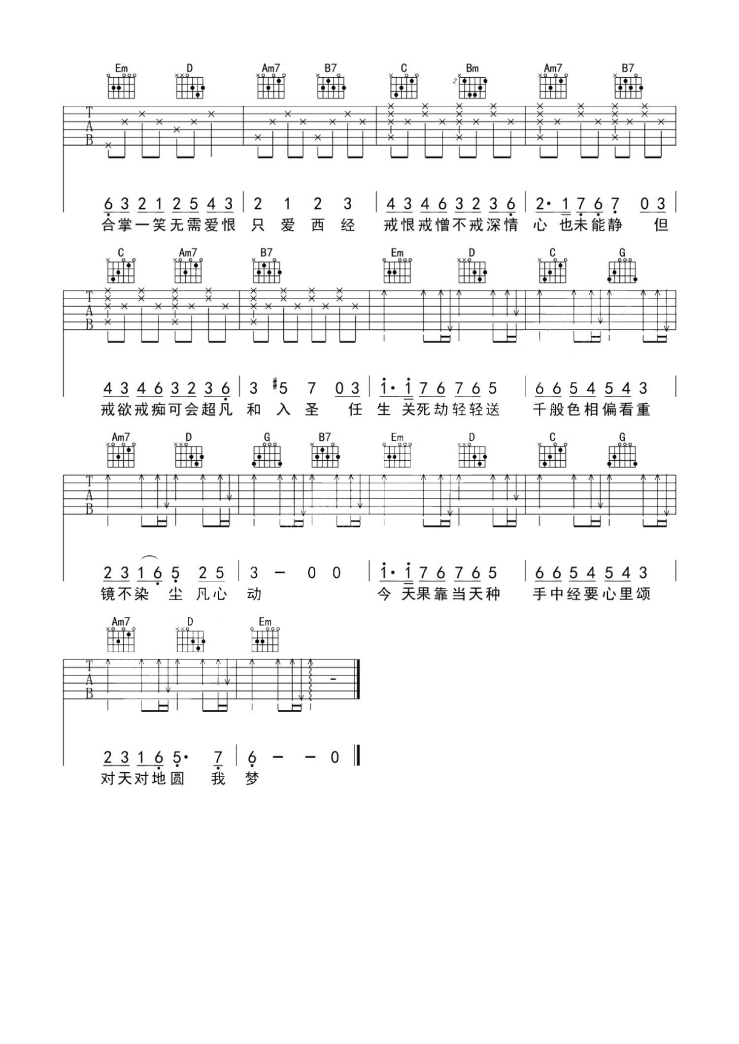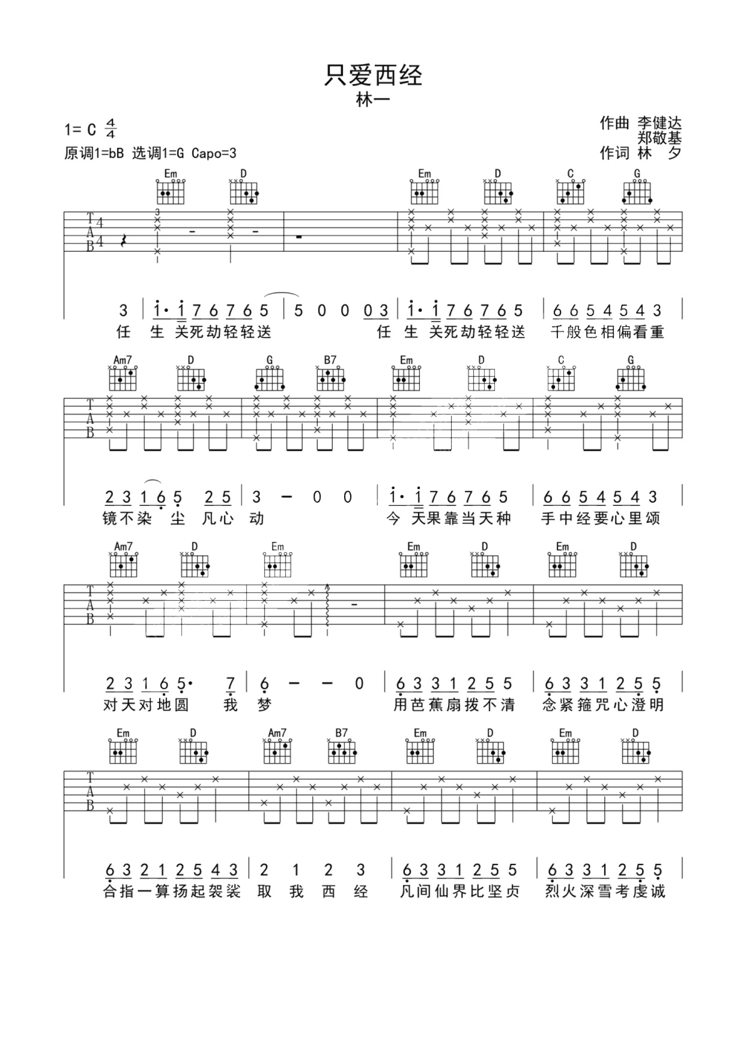 曲谱介绍: 洪建华《只爱西经》吉他谱C调弹唱六线谱