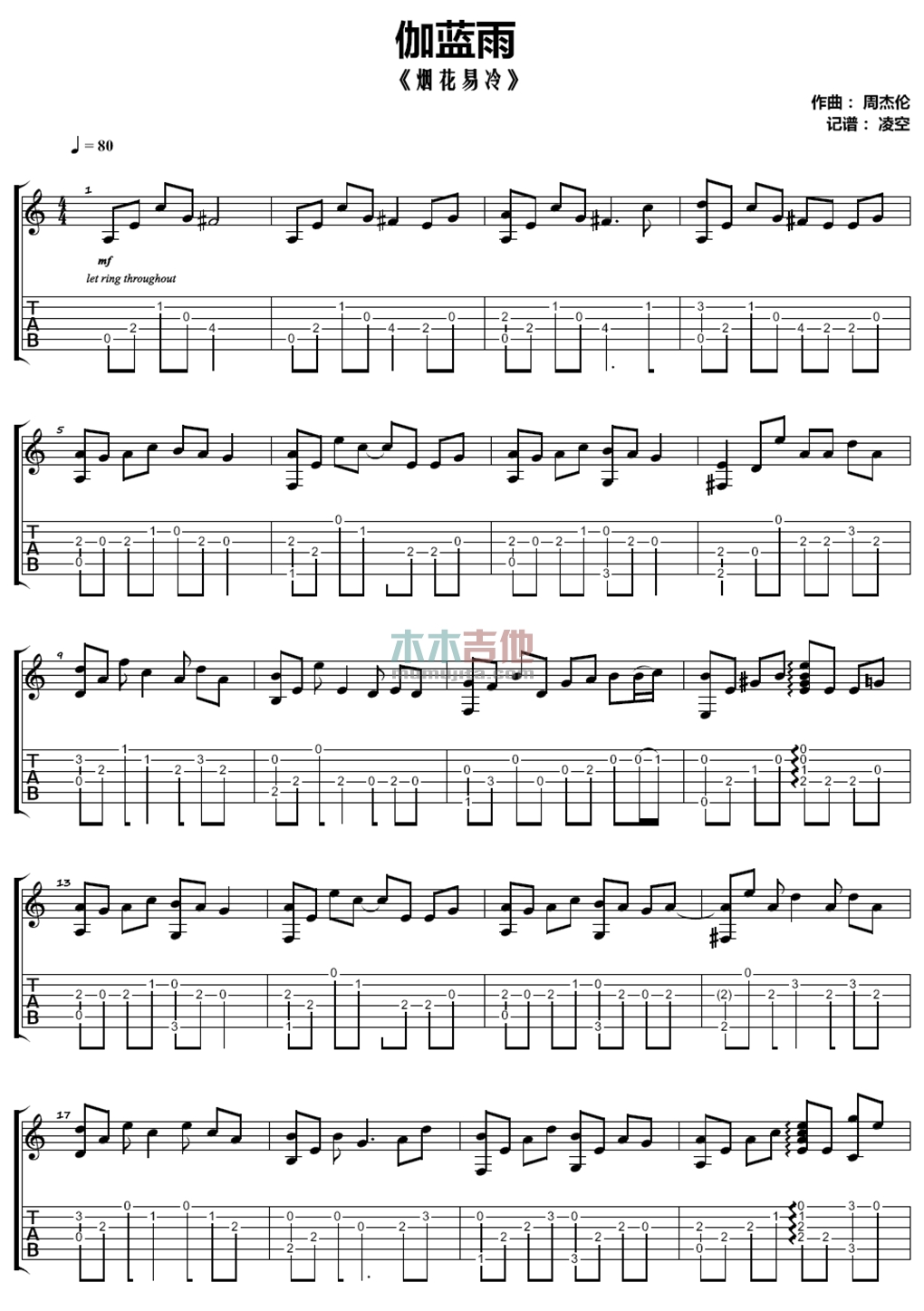 曲谱介绍: 周杰伦《烟花易冷》吉他独奏谱,共有4张高清图谱。