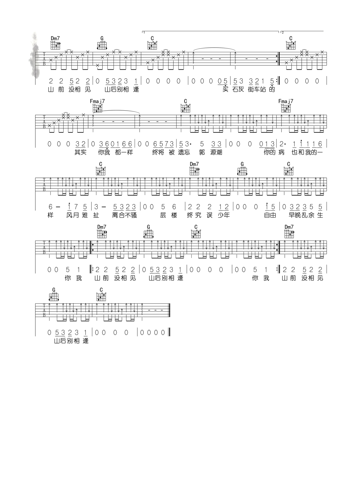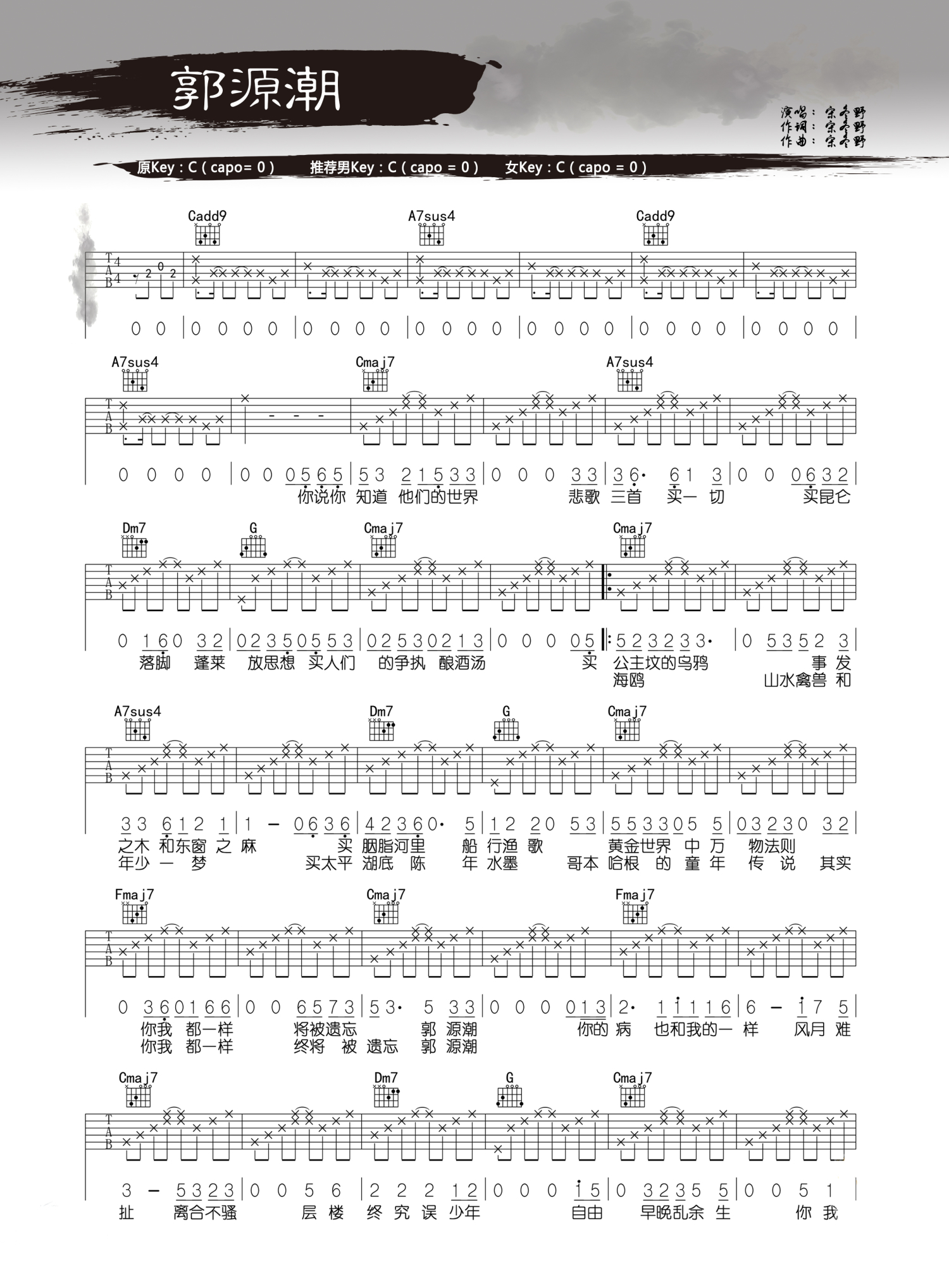 郭源潮吉他谱 - 宋冬野 - C调吉他弹唱谱