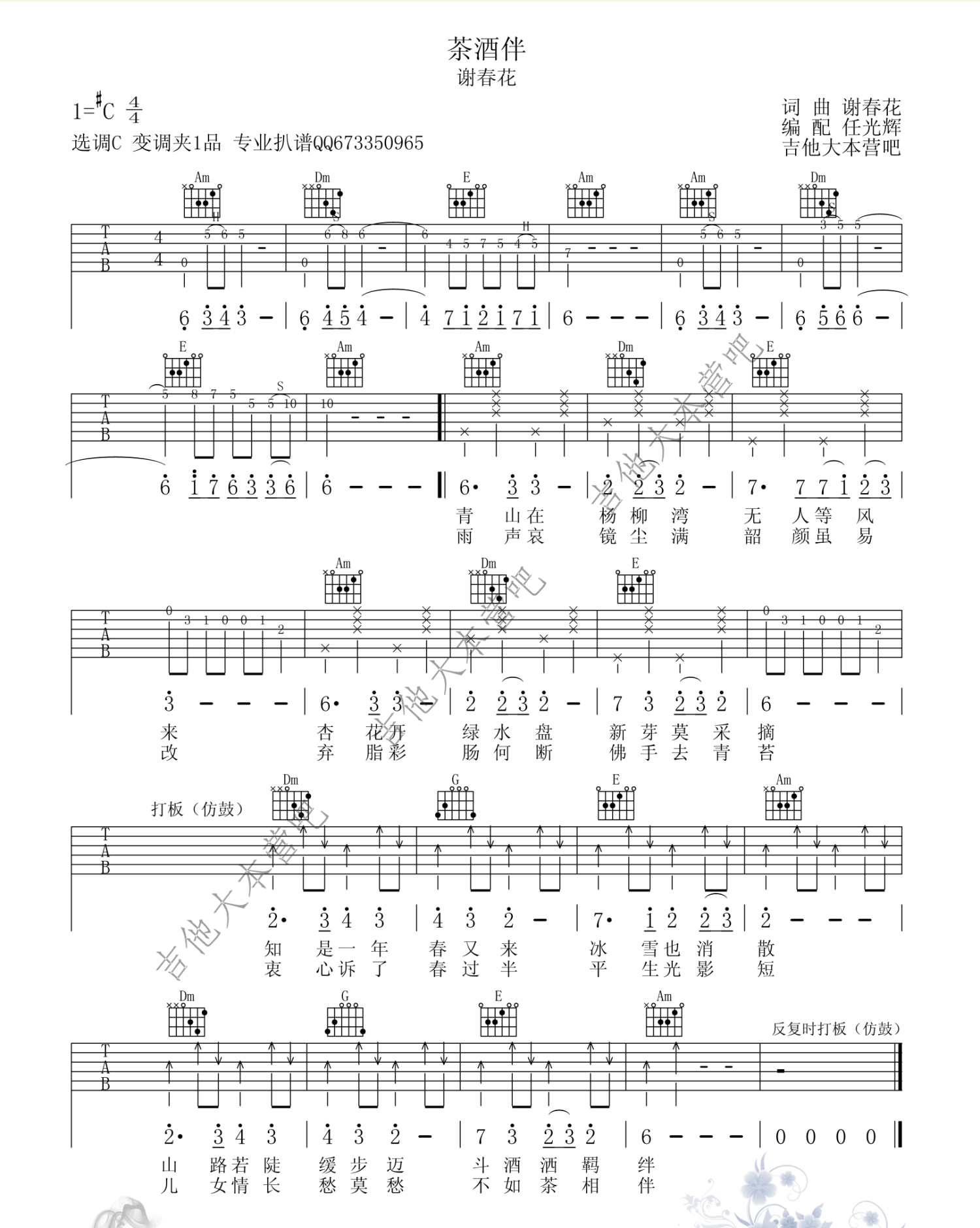 吉他弹唱C调来源:吉他大本营--任光辉1017 浏览2018-03-19 13:34发布图谱共1页