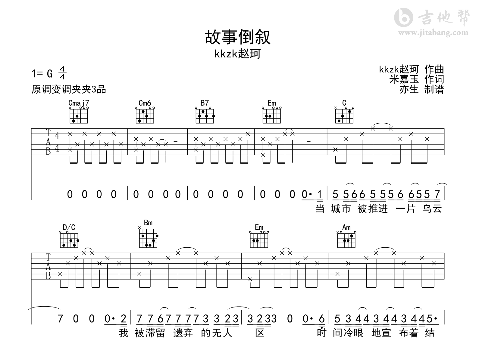 故事倒叙吉他谱 - kkzk赵珂 - G调吉他弹唱谱