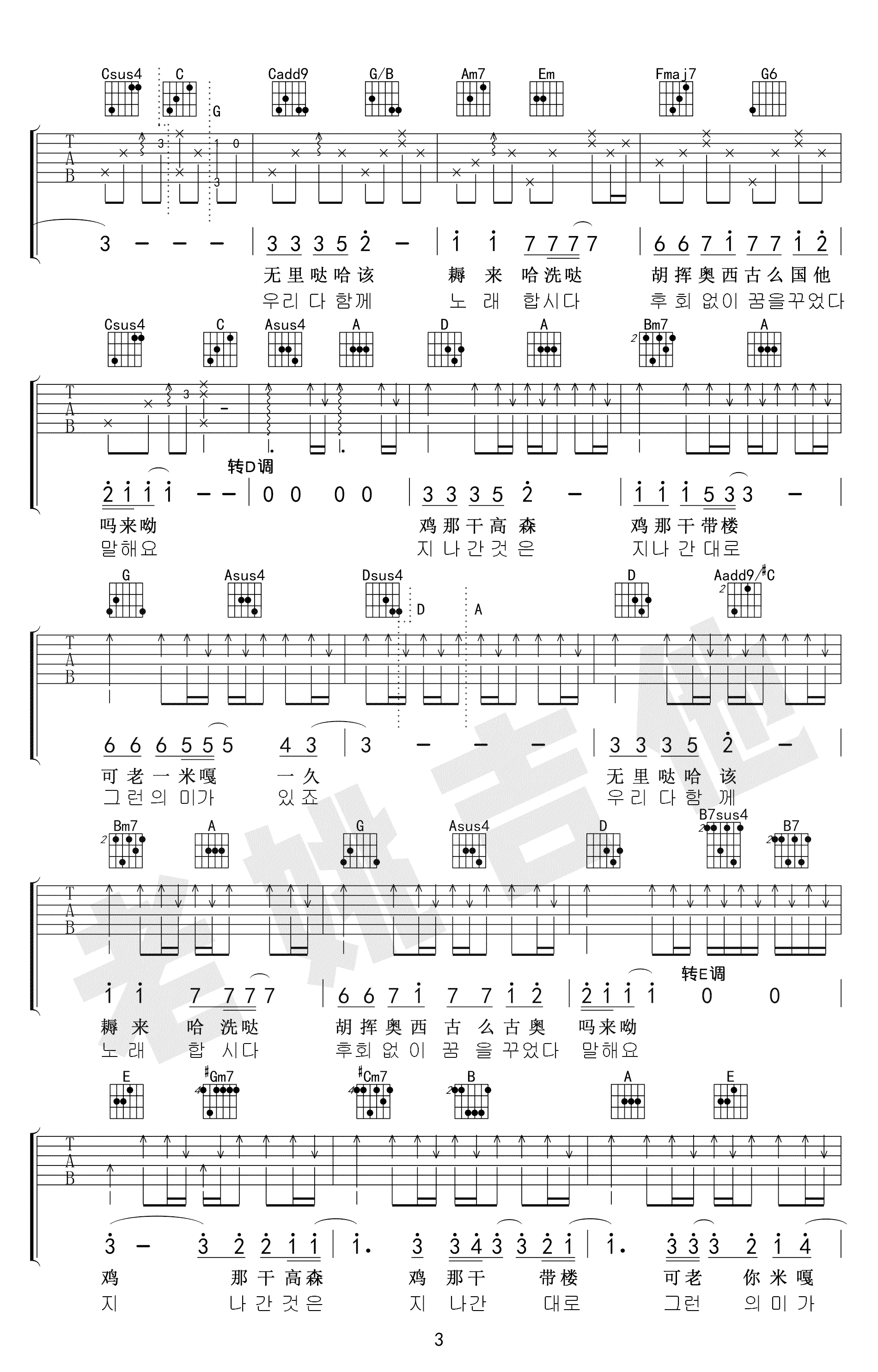 曲谱介绍: 吉他谱介绍:你不要担心吉他谱,李迪演唱的一首歌曲,4/4拍的节奏,这首歌曲的原调为A调,这里曲谱采用了A调指法进行编配,演唱时可不夹变调夹,曲谱由琴谱网更新上传,共4张高清图片弹唱吉他谱例,来源于@老姚吉他编配出品。这首歌是韩国连续剧《请回答1988》中的插曲,看过《请回答1988》的人都不会对这首歌陌生。这是一首略带忧伤又治愈人心的歌。不管是李迪版本的温柔和干净,还是全仁权版本的沧桑,都让人回味无穷。 你不要担心吉他弹唱教学