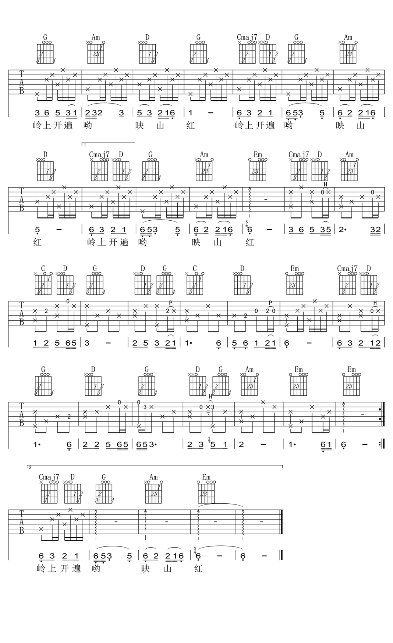 映山红吉他谱 - 黄英 - G调吉他弹唱谱