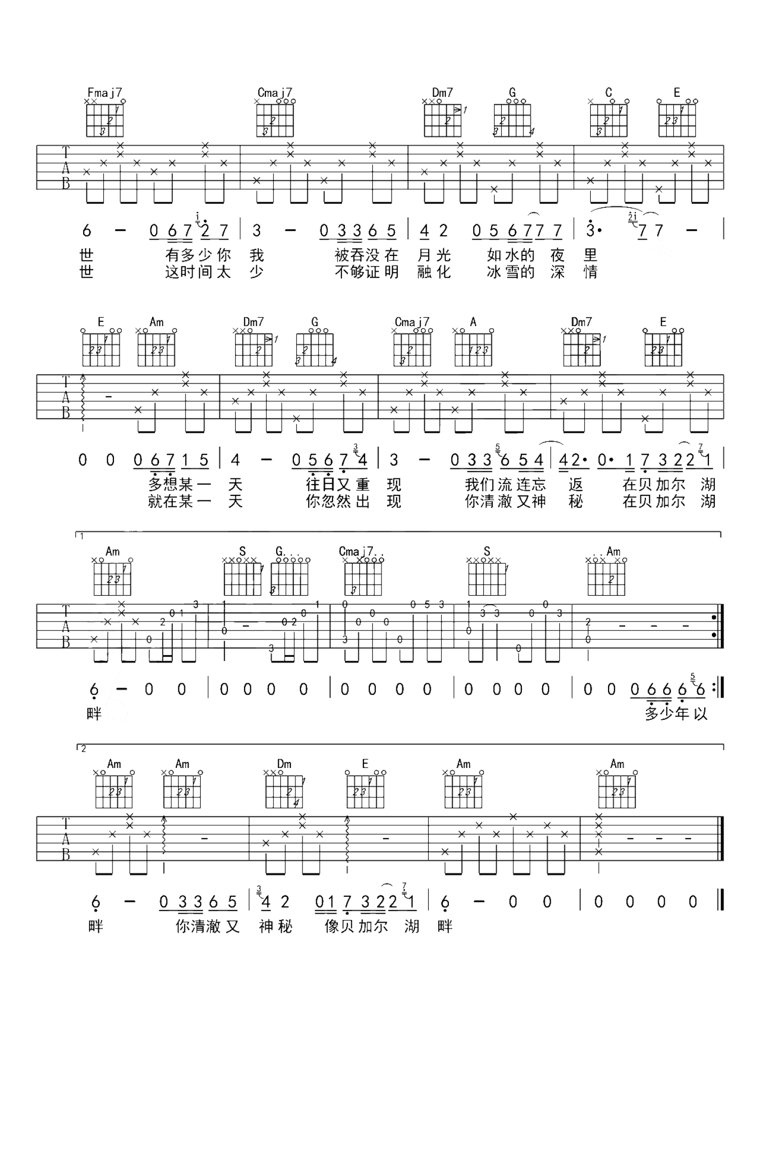 当前位置:琴谱网>吉他弹唱>贝加尔湖畔
