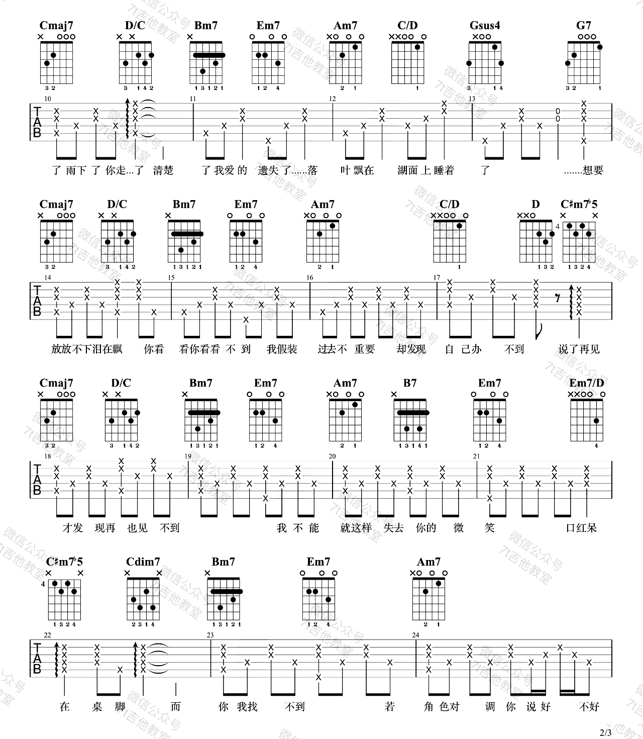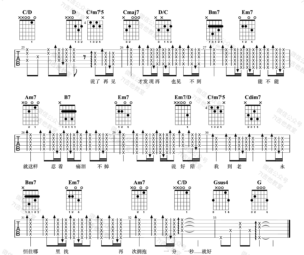 曲谱介绍: 说了再见吉他谱_周杰伦_《说了再见》G调原版六线谱_吉他弹唱教学分享,《说了再见》是由周杰伦创作并演唱的一首经典的周氏情歌。“说了再见 才发现再也见不到”,歌词充满对曾经恋人的不舍和遗憾之情。你有过这样《说了再见》的遗憾吗? 此版本的曲谱来源于7T吉他教室扒谱制谱,歌曲原调为D调,这里采用了G调指法根据原版进行编配,演唱时可根据自己的嗓音情况夹变调夹。曲谱编配难度不大,只是前奏部分需要多花时间,不懂的地方可以参考吉他弹唱教学视频。 说了再见吉他谱_周杰伦_《说了再见》G调原版六线谱_吉他弹唱教学视频:   说了再见吉他谱_周杰伦_《说了再见》G调原版吉他弹唱六线谱_高清图片谱1: