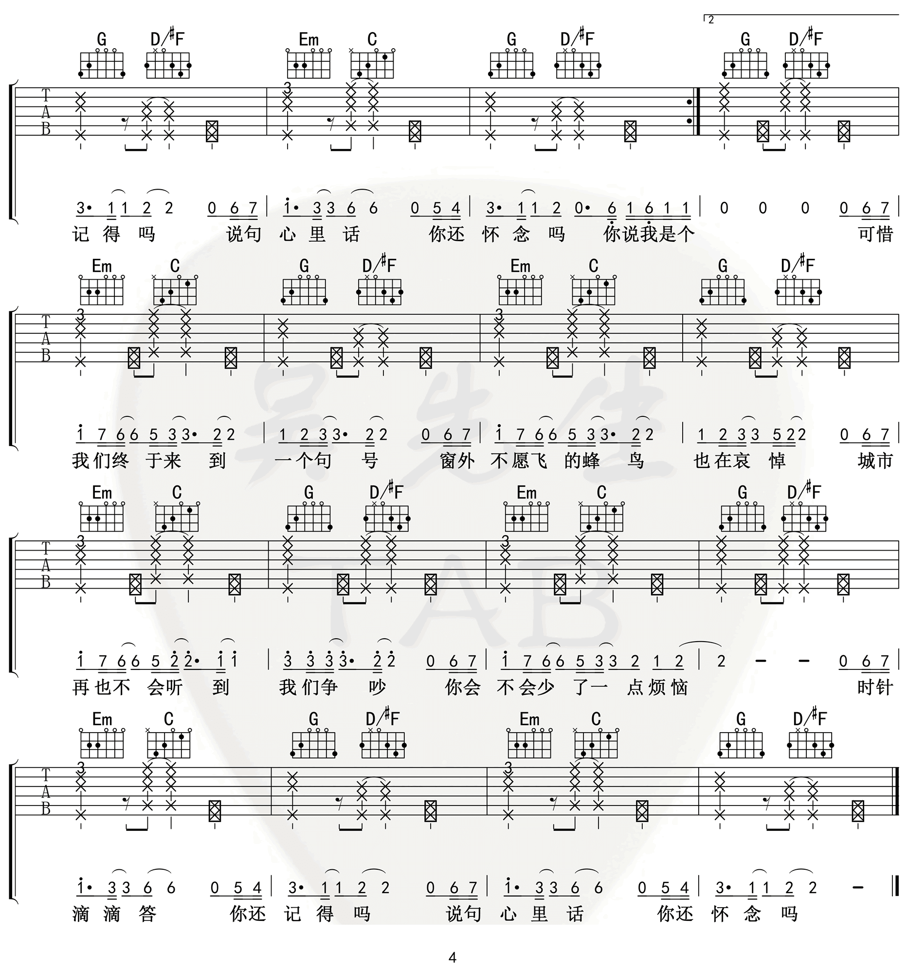 当前位置:琴谱网>吉他弹唱>句号
