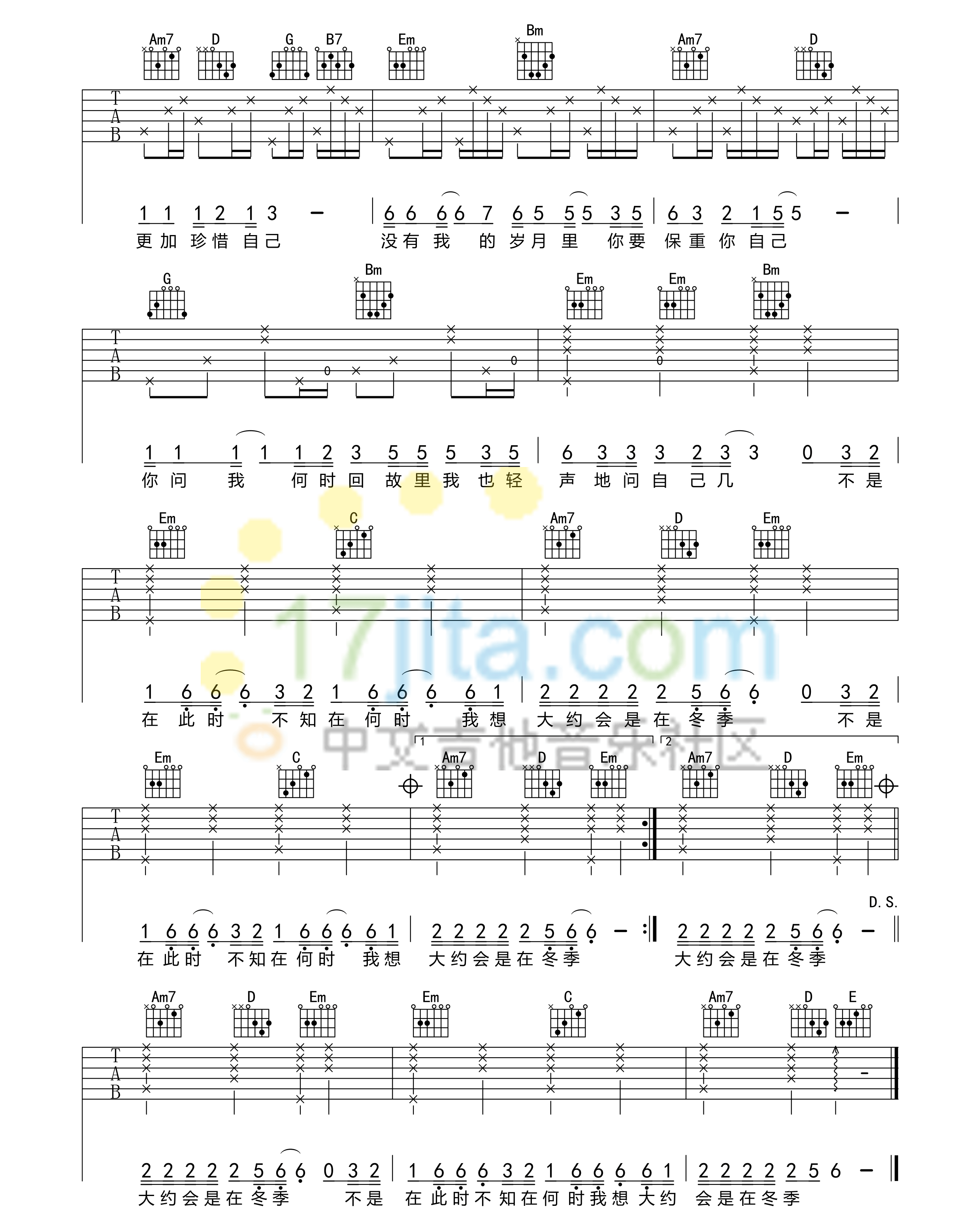 当前位置:琴谱网>吉他弹唱>大约在冬季