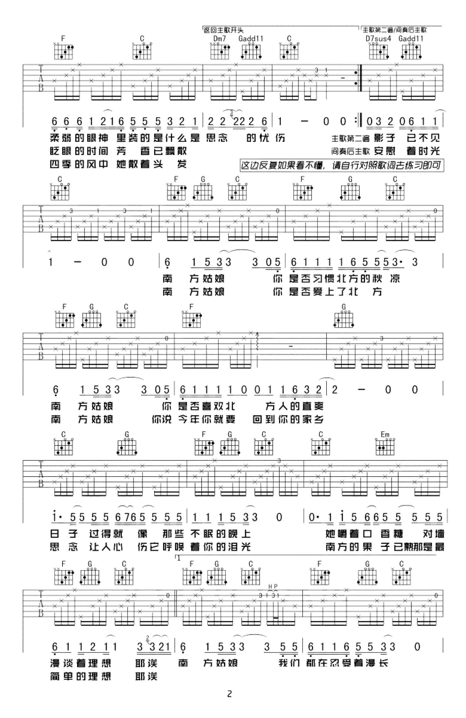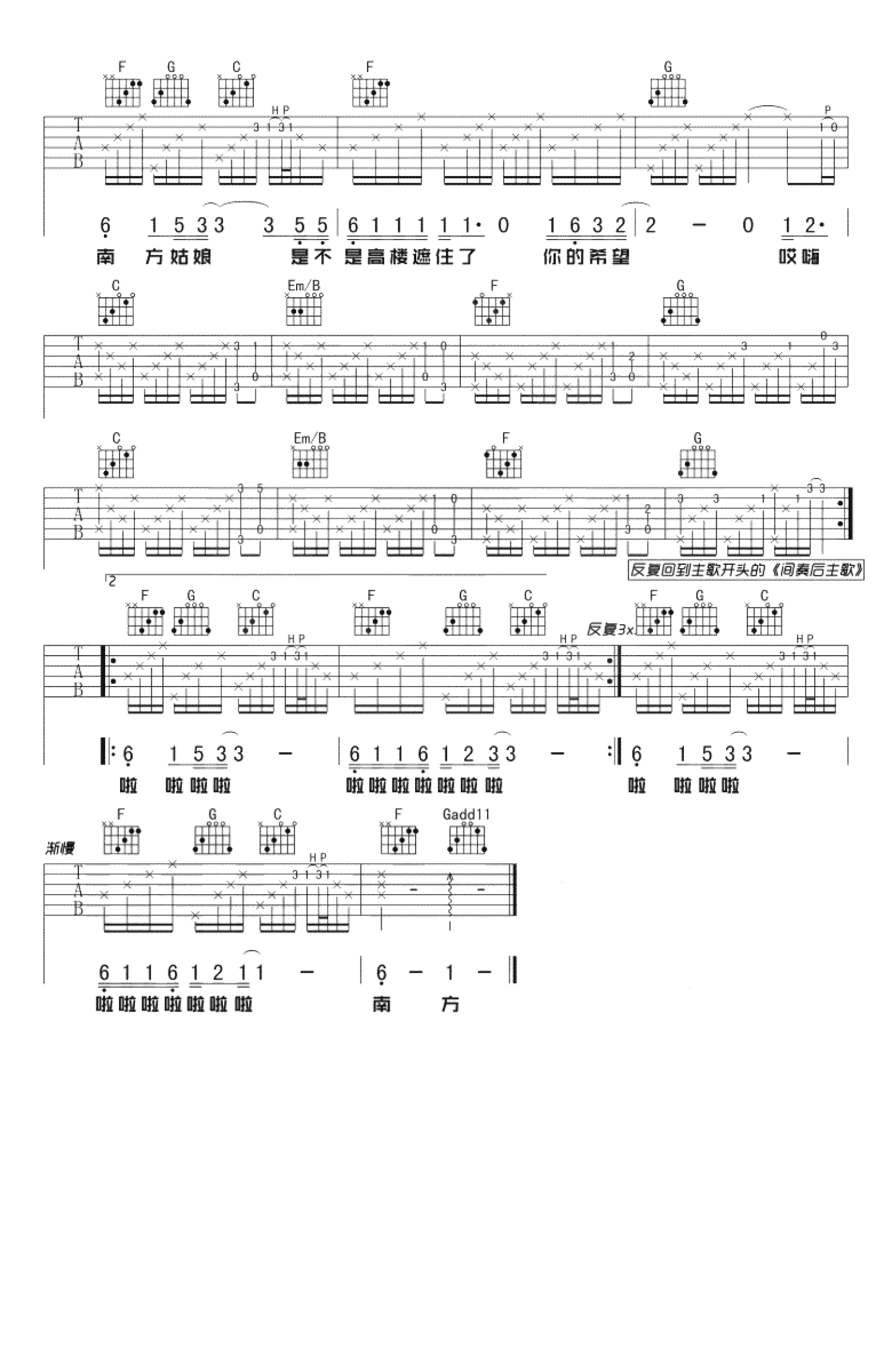 当前位置:琴谱网>吉他弹唱>南方姑娘