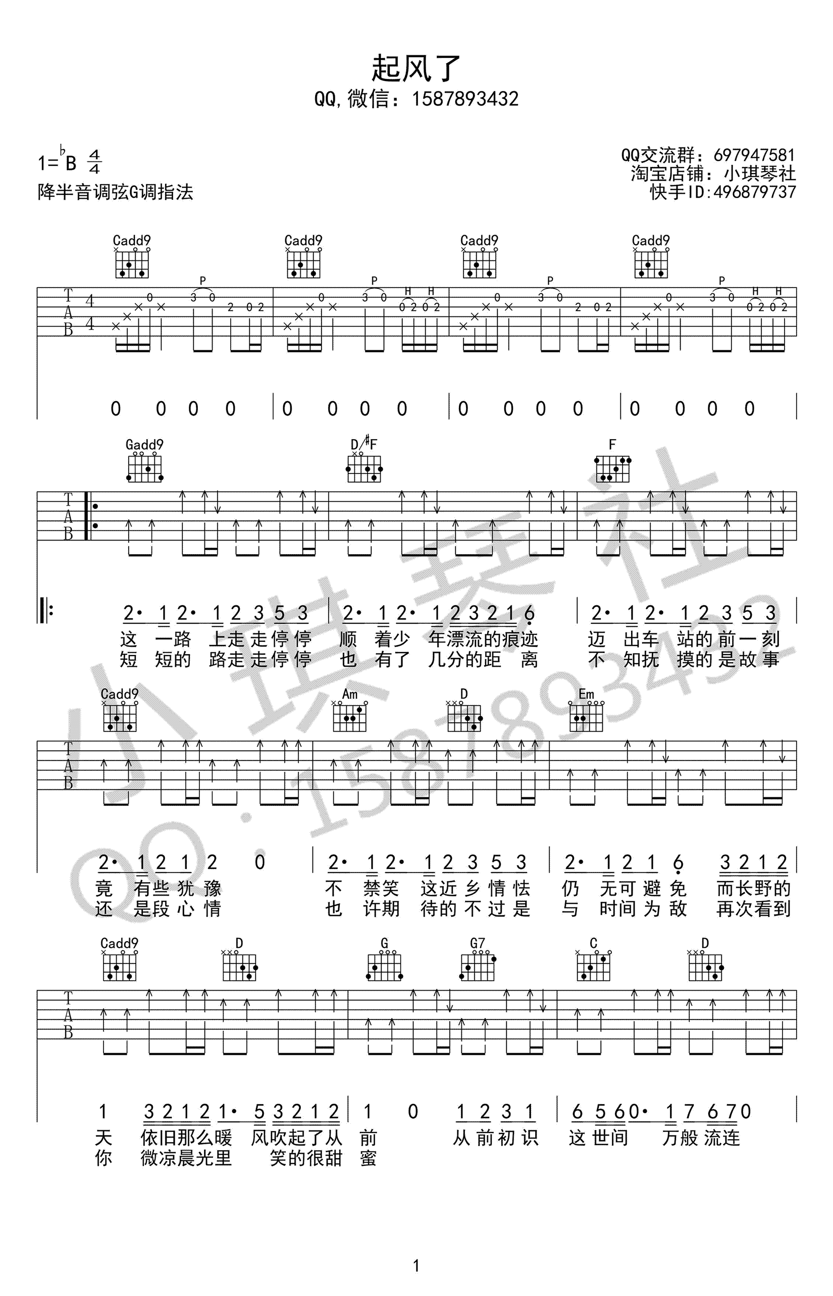 曲谱介绍: 买辣椒也用券《起风了》吉他弹唱谱,采用G调指法编配原版,共有3张高清图谱。