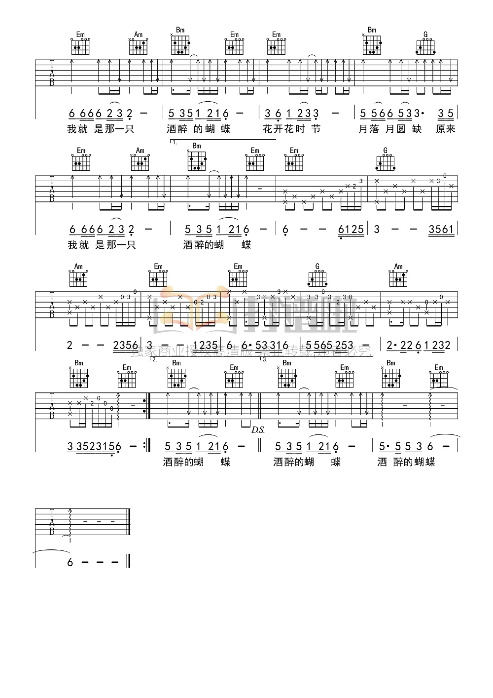 当前位置:琴谱网>吉他弹唱>酒醉的蝴蝶