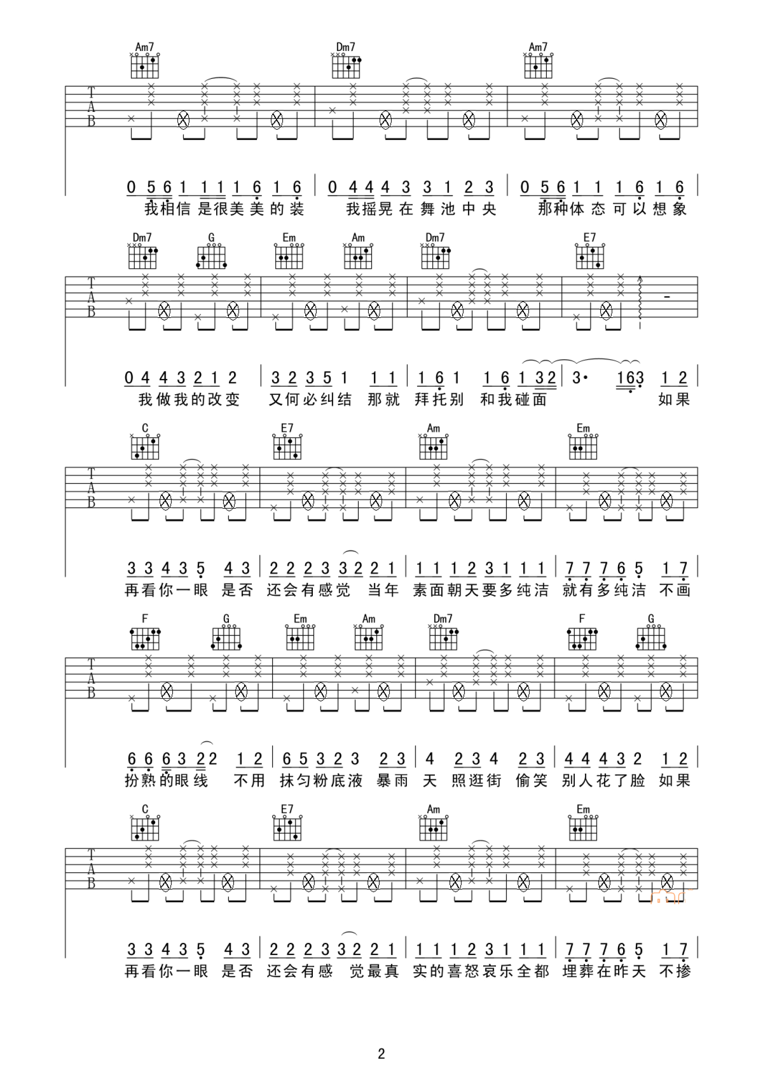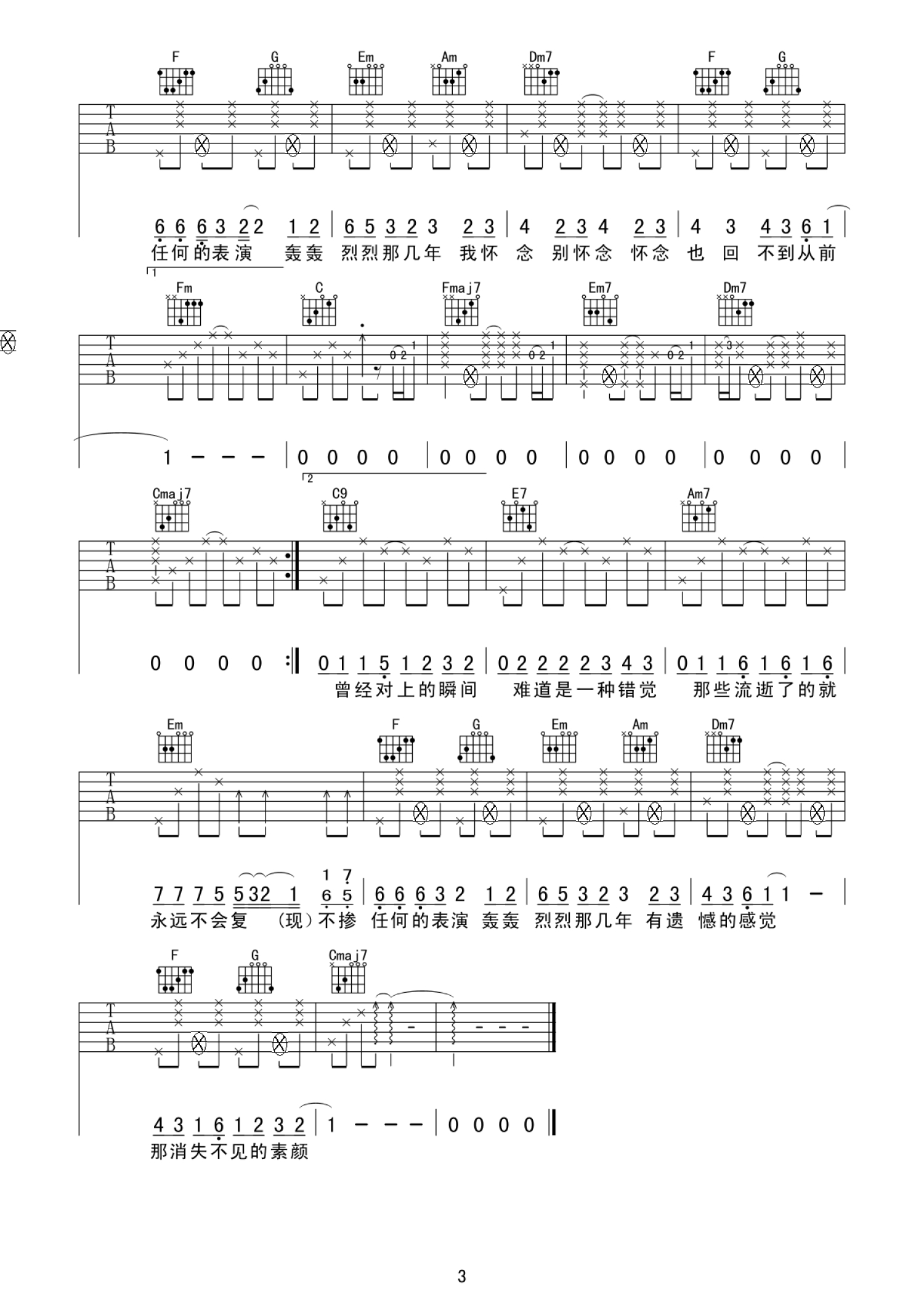当前位置:琴谱网>吉他弹唱>素颜