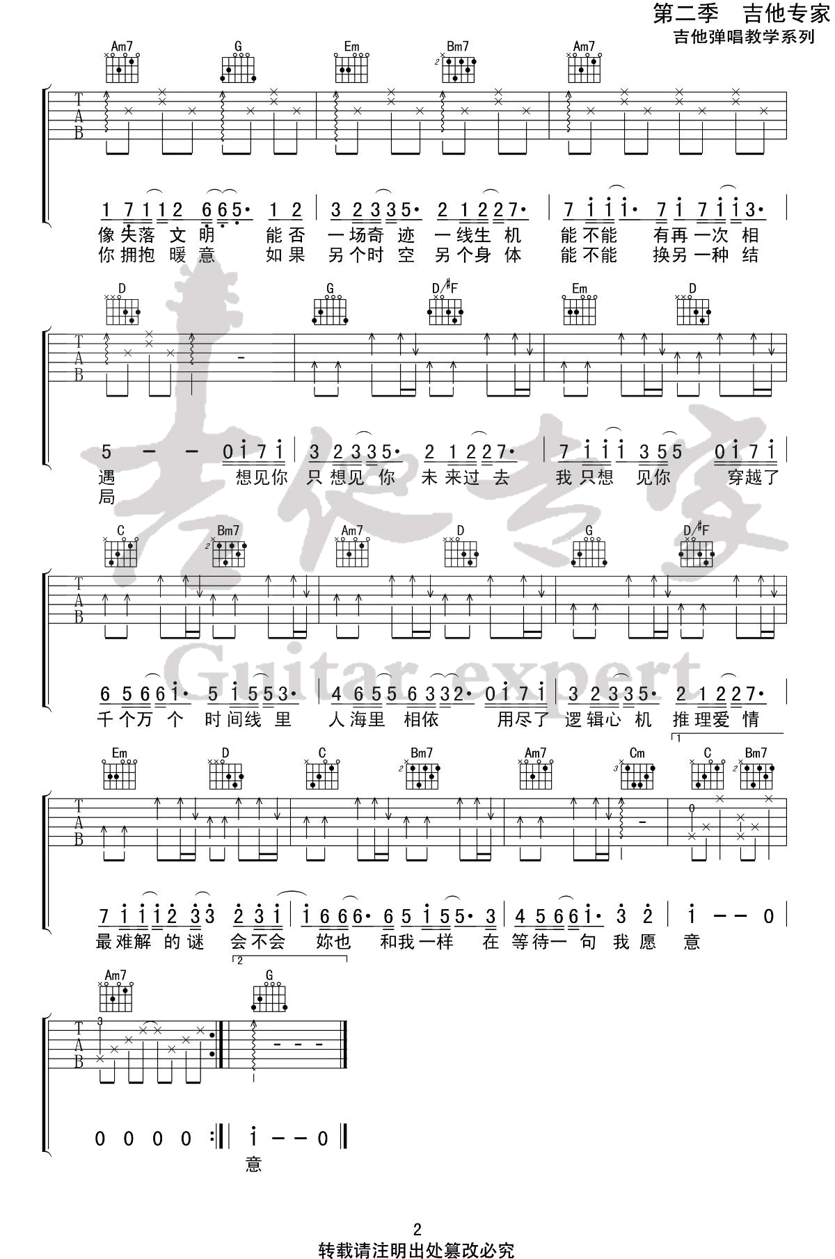 当前位置:琴谱网>吉他弹唱>想见你想见你想见你