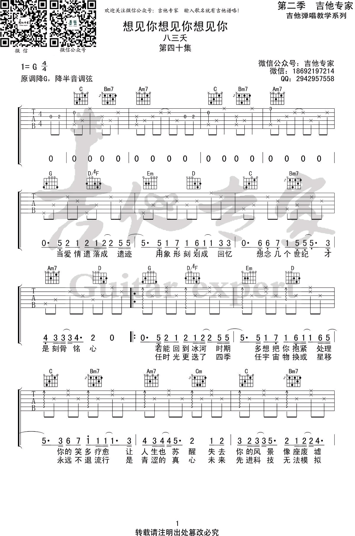 想见你想见你想见你吉他谱 - 八三夭 - G调吉他弹唱谱 - 原版