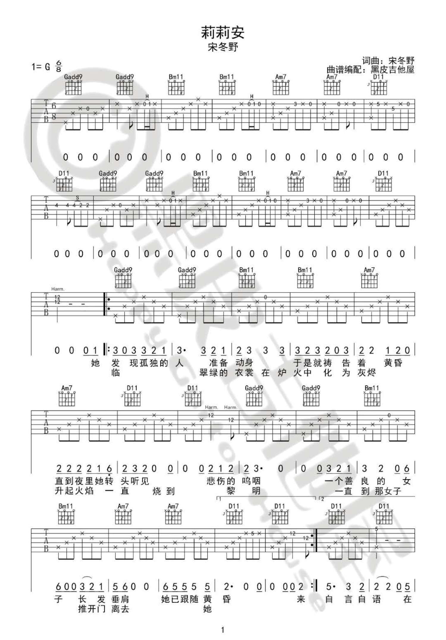莉莉安吉他谱 - 宋冬野 - G调吉他弹唱谱