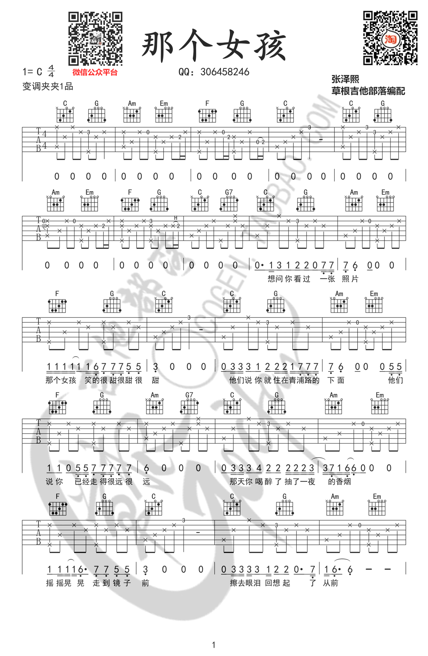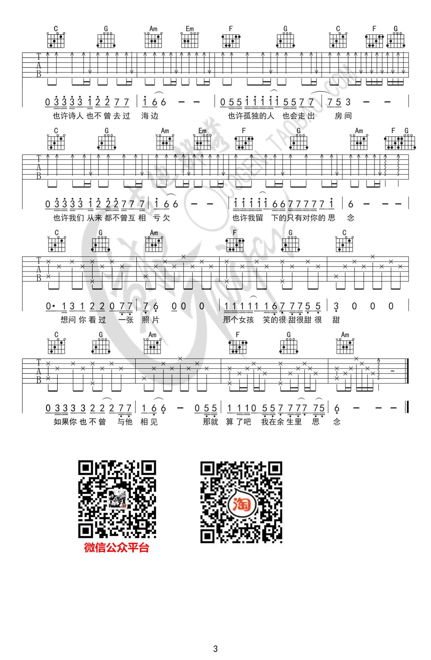 吉他弹唱C调来源:草根吉他部落1180 浏览2019-12-12 19:29发布图谱共3页