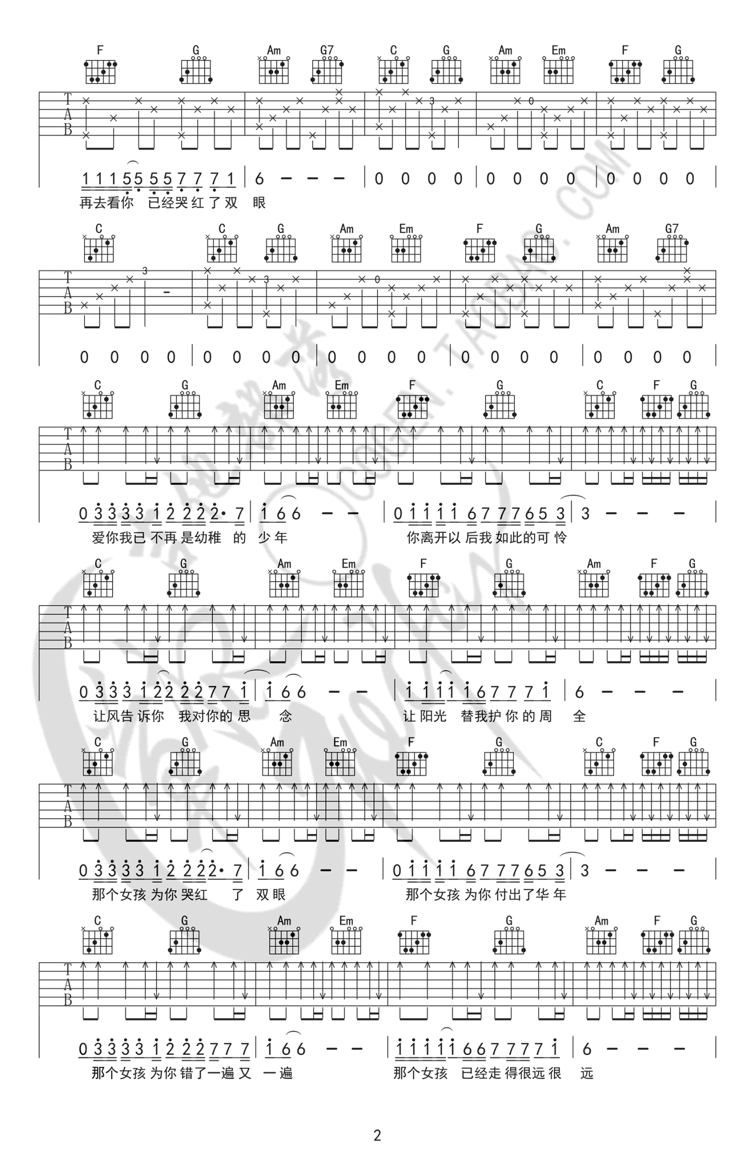 当前位置:琴谱网>吉他弹唱>那个女孩
