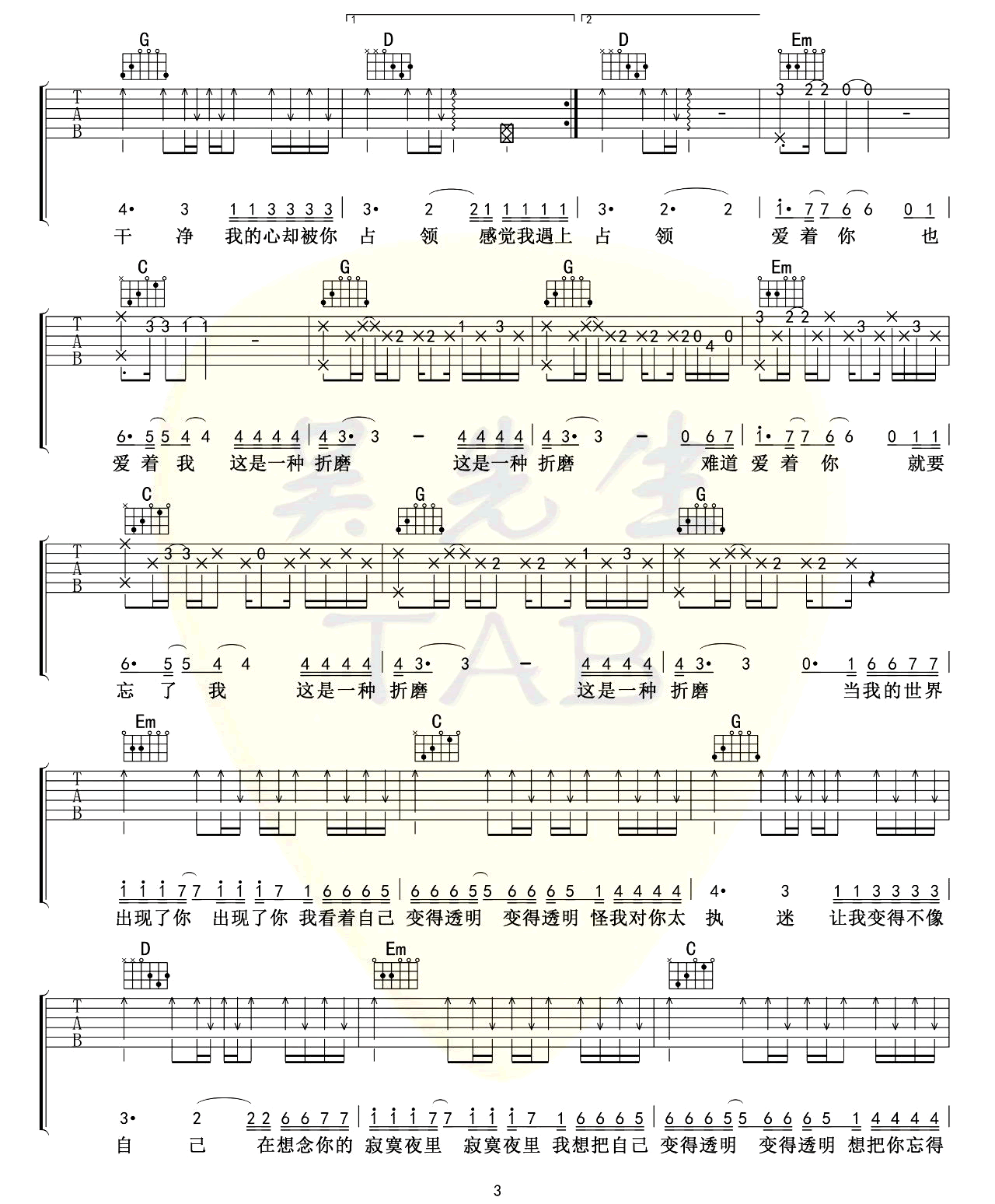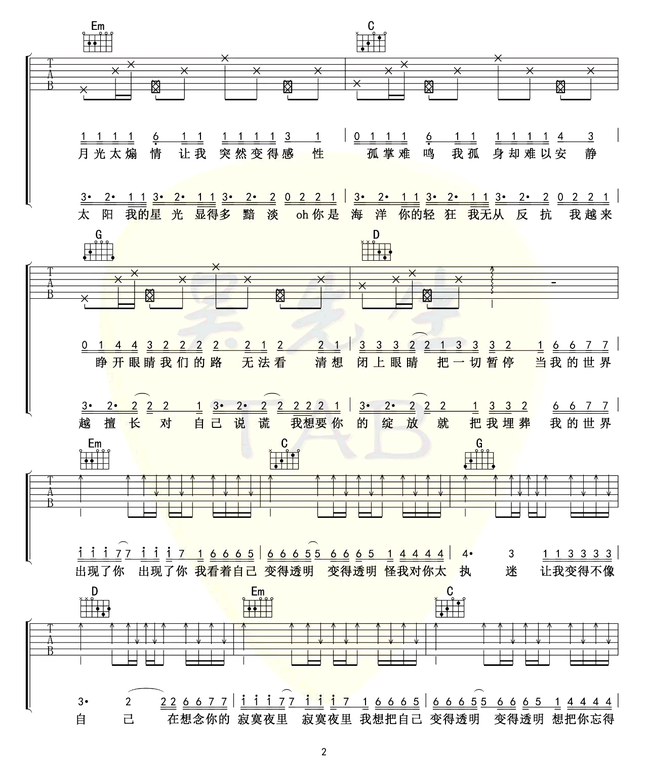当前位置:琴谱网>吉他弹唱>透明