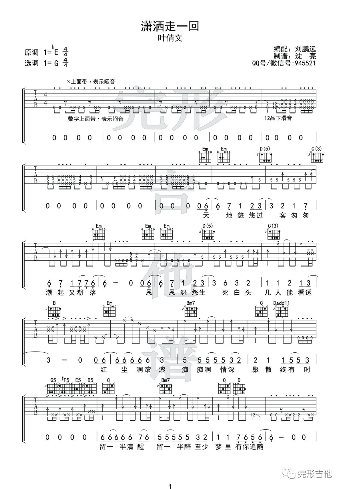 琴谱网为您精心推荐 潇洒走一回 高清图谱