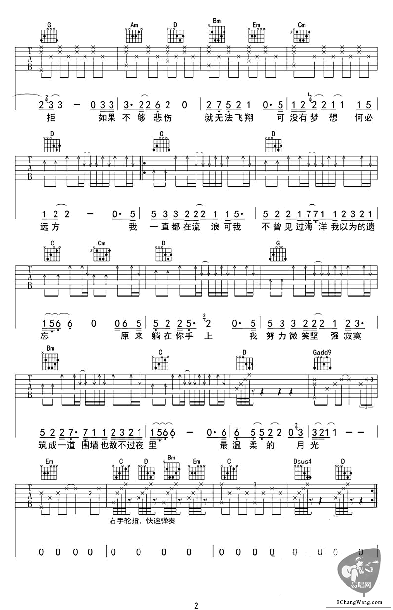 曲谱介绍: 残酷月光吉他谱_林宥嘉_《残酷月光》G调弹唱谱_高清六线谱分享,《残酷月光》是由林宥嘉创作并演唱的一首歌,这是一首在林宥嘉沉郁的声音里所表现出来深情地歌曲,别离后时不时的想起了你,流浪时孤独后寂寞的围墙高伫,而我所爱的人就像月光一样越过围墙照过来,但你又是那么残酷的离我而去。正如我们所生活的,天下没有不散的宴席,但你就是我唯一永存的月光啊,怎样的都会躺在你手心。