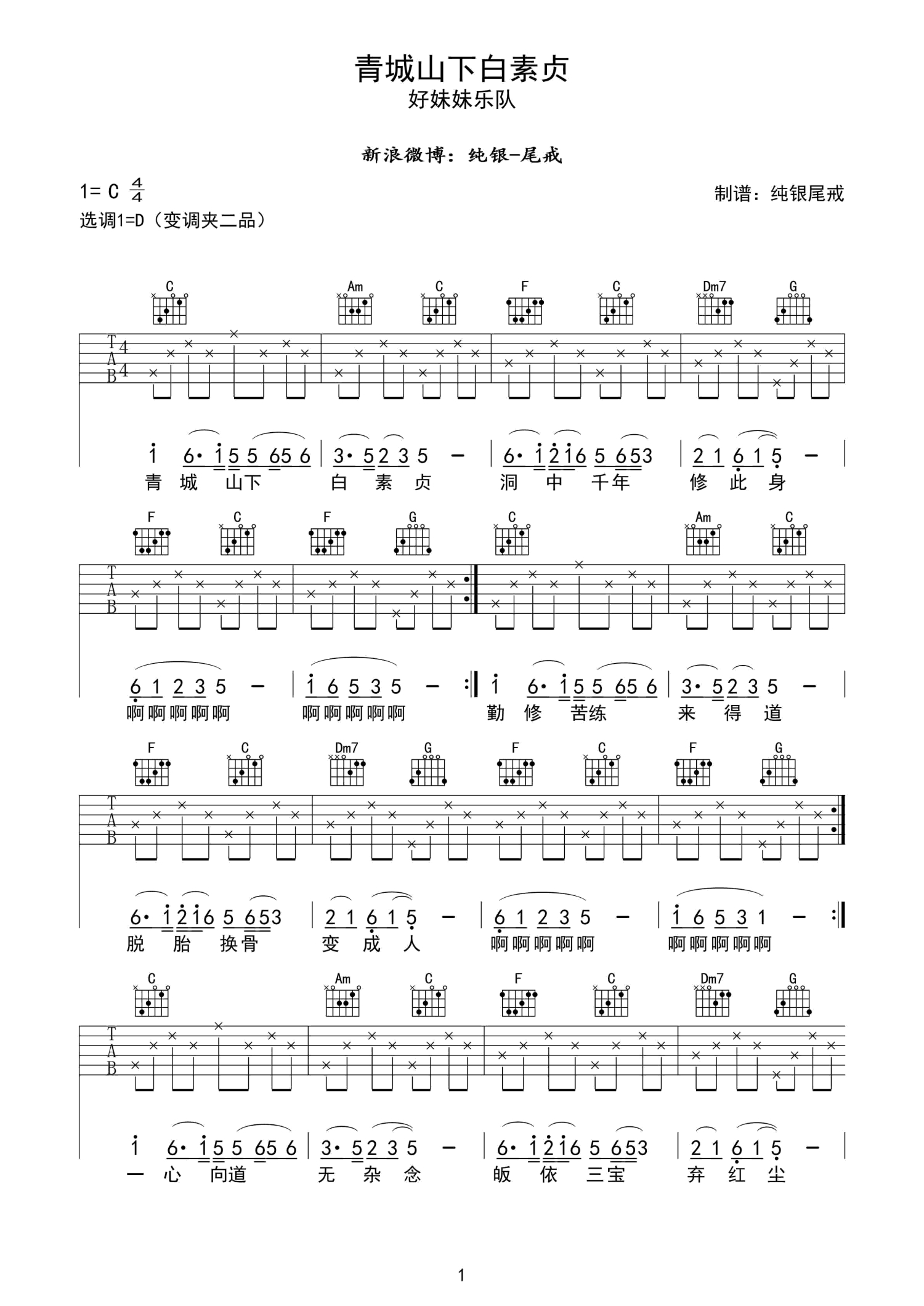 青城山下白素贞吉他谱 - 好妹妹乐队 - D调吉他弹唱谱