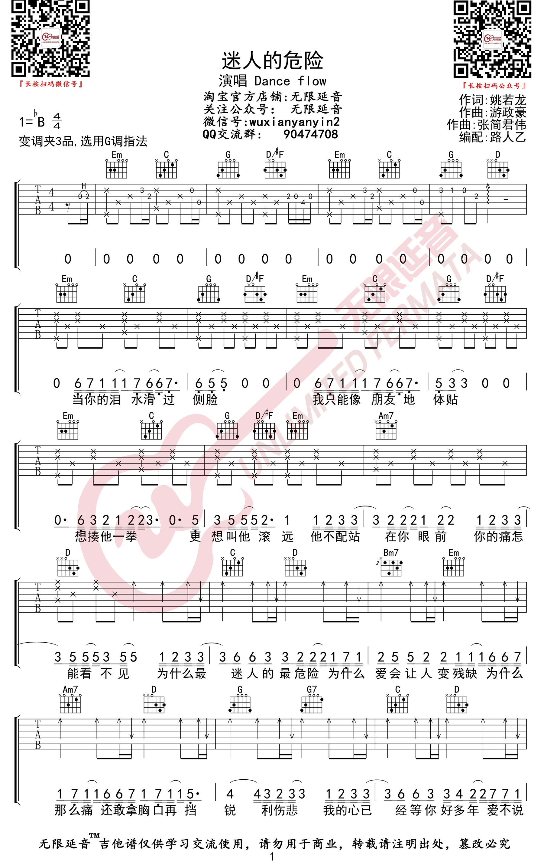 曲谱介绍: 《迷人的危险》吉他谱_Dance Flow_G调弹唱六线谱_高清图片谱分享,《迷人的危险》是Dance flow演唱的一首歌曲,《迷人的危险》这一首老歌,唤醒的是再也回不去的记忆,不是现在落入了安逸的生活而失去了对生活探索的渴望,而是以前对未知的期待让人有了源源不断的动力,即使那是危险的,其也是迷人的。是的,那迷人的危险,是我们青春的放荡,岁月的不羁。