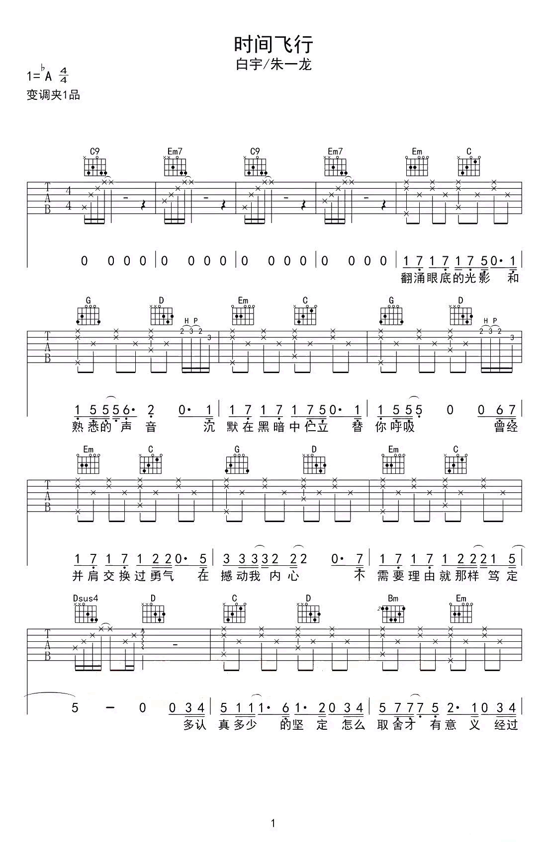 时间飞行吉他谱 - 白宇/朱一龙 - G调吉他弹唱谱