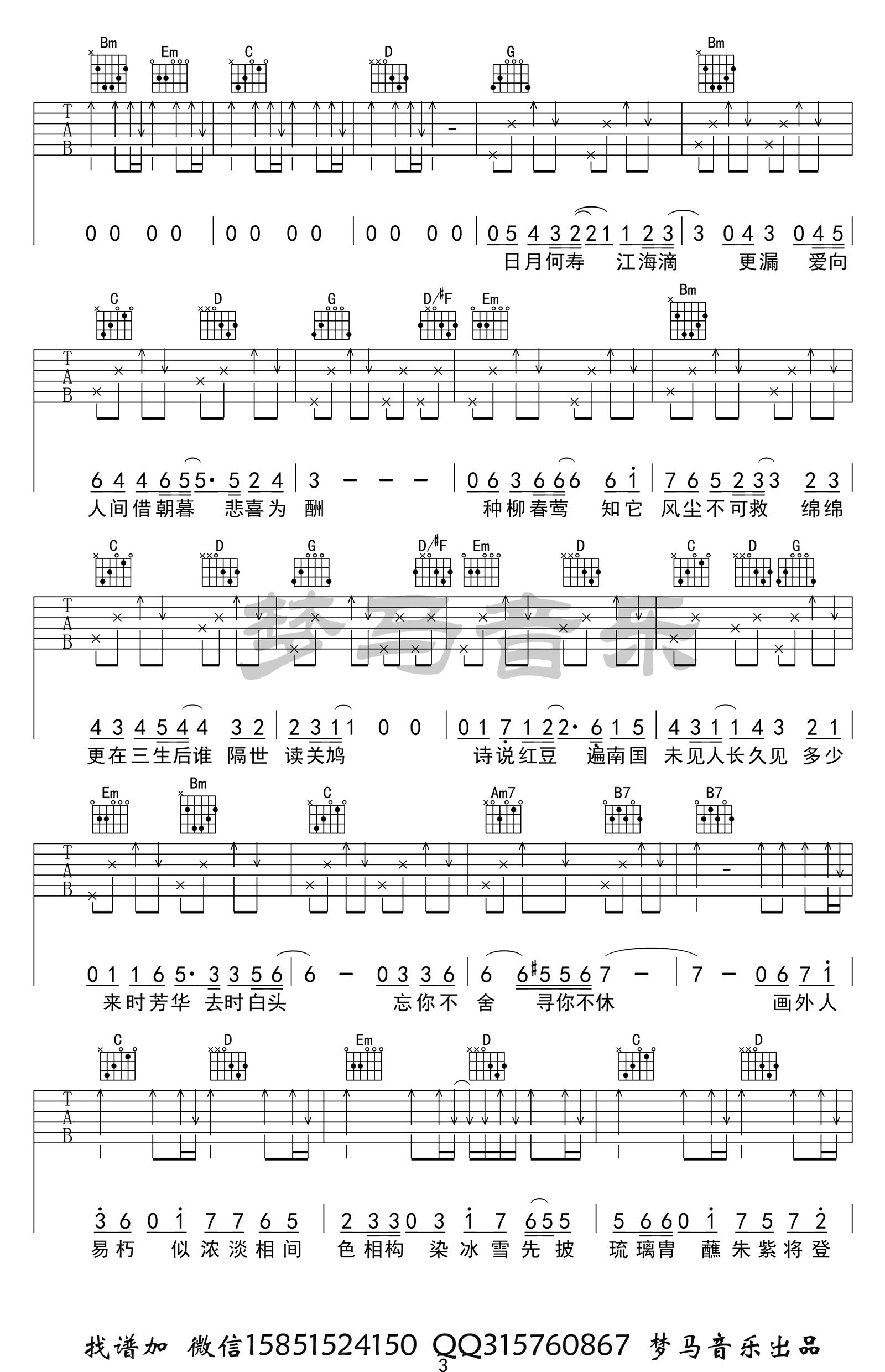 当前位置:琴谱网>吉他弹唱>吹梦到西洲