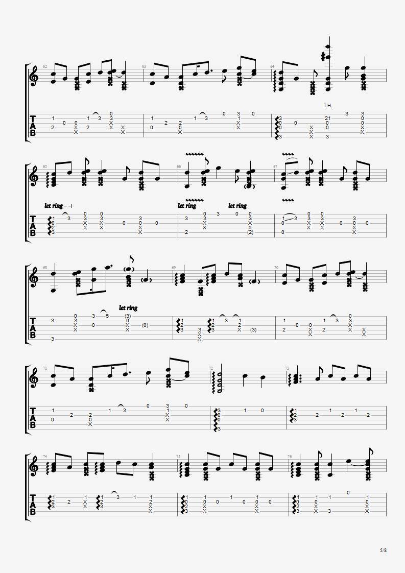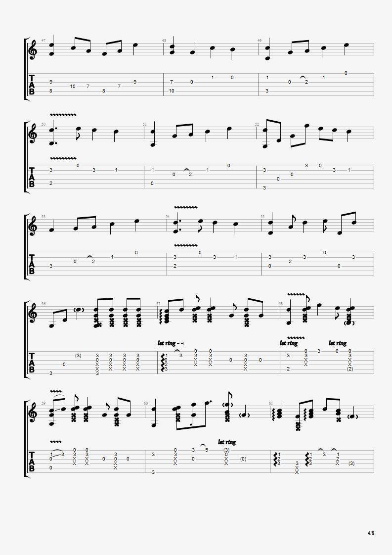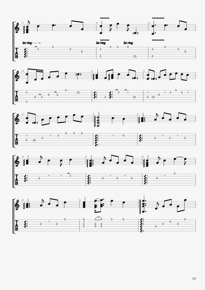 发如雪吉他谱 - 周杰伦 - 吉他独奏谱